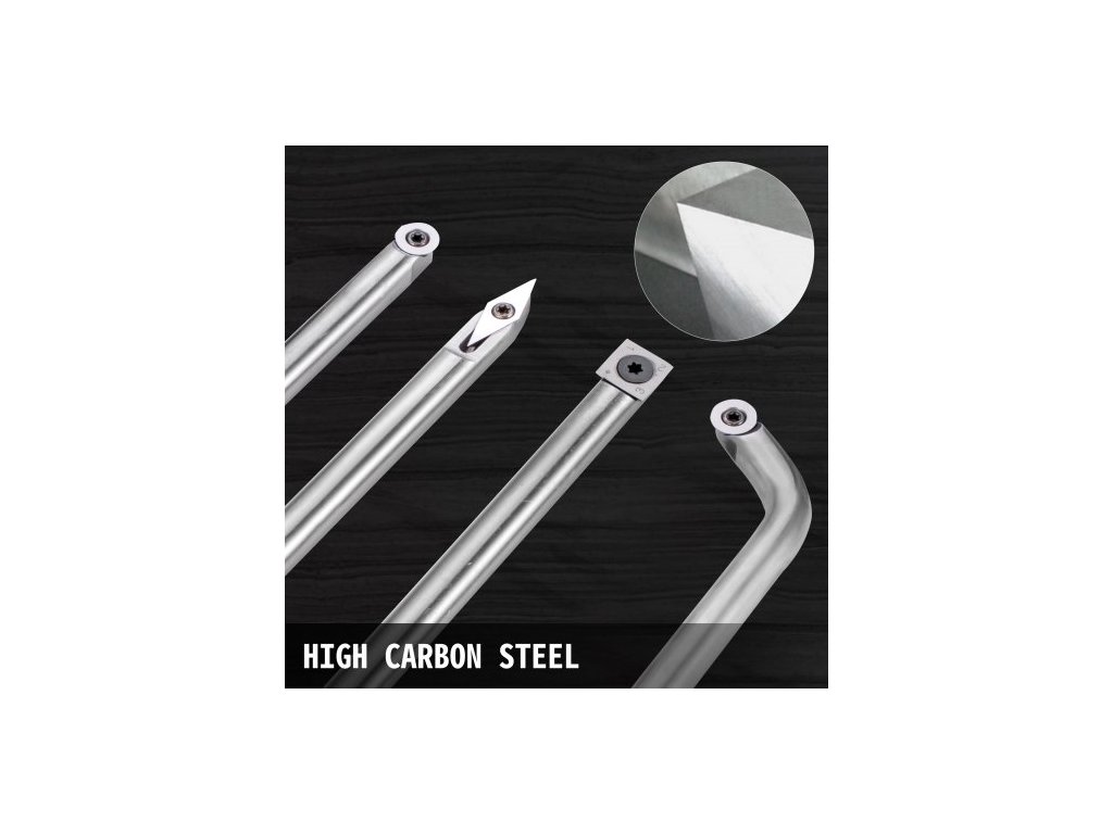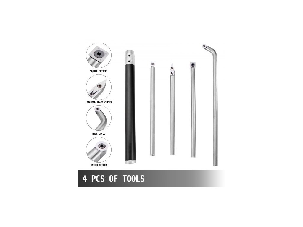 Sada 4dílných soustružnických nástrojů pro soustruh, karbidové soustružnické nástroje s diamantovým tvarem, kulatými a čtvercovými břity, vyměnitelné soustružnické dláta s rukojetí, soustružnické nástroje pro kutily a kutily4 ks nástrojů