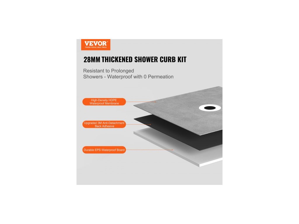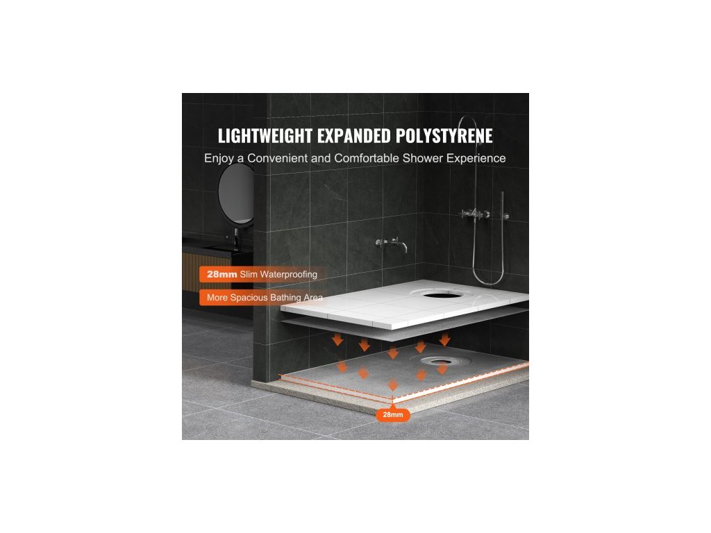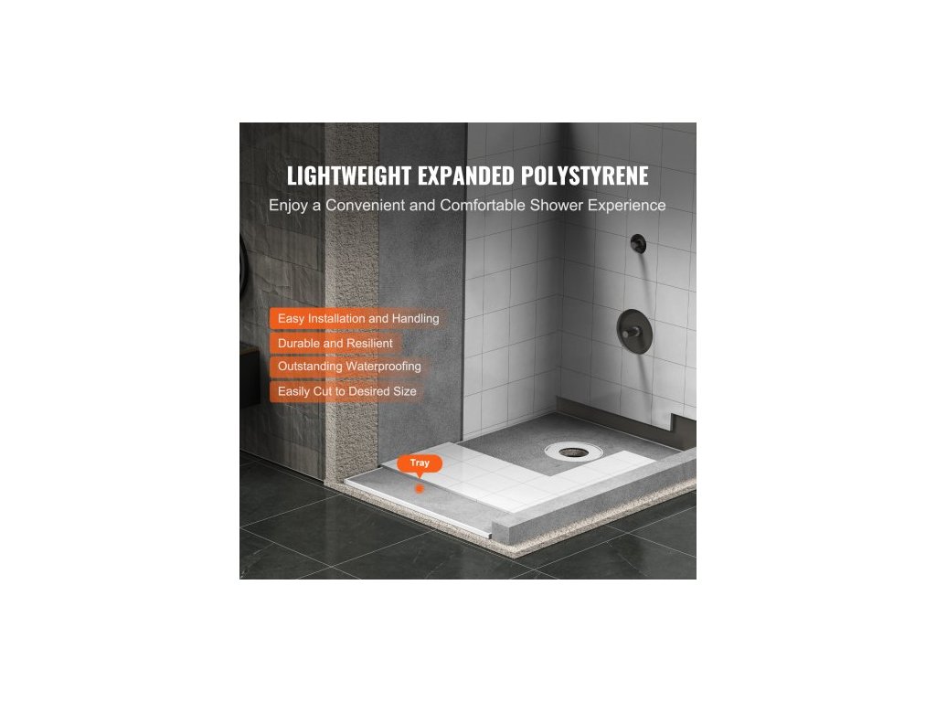 Sada sprchového obrubníku , sada sprchové vaničky 1524x965mm s odsazeným odtokem 160mm, lehké sady pro instalaci sprchy z EPS se 2 vodotěsnými utěrkami, spádové tyče sprchové vaničky vhodné do koupelnyVynikající hydroizolace