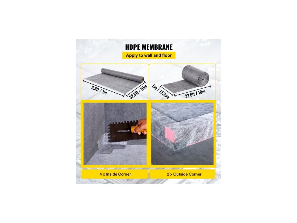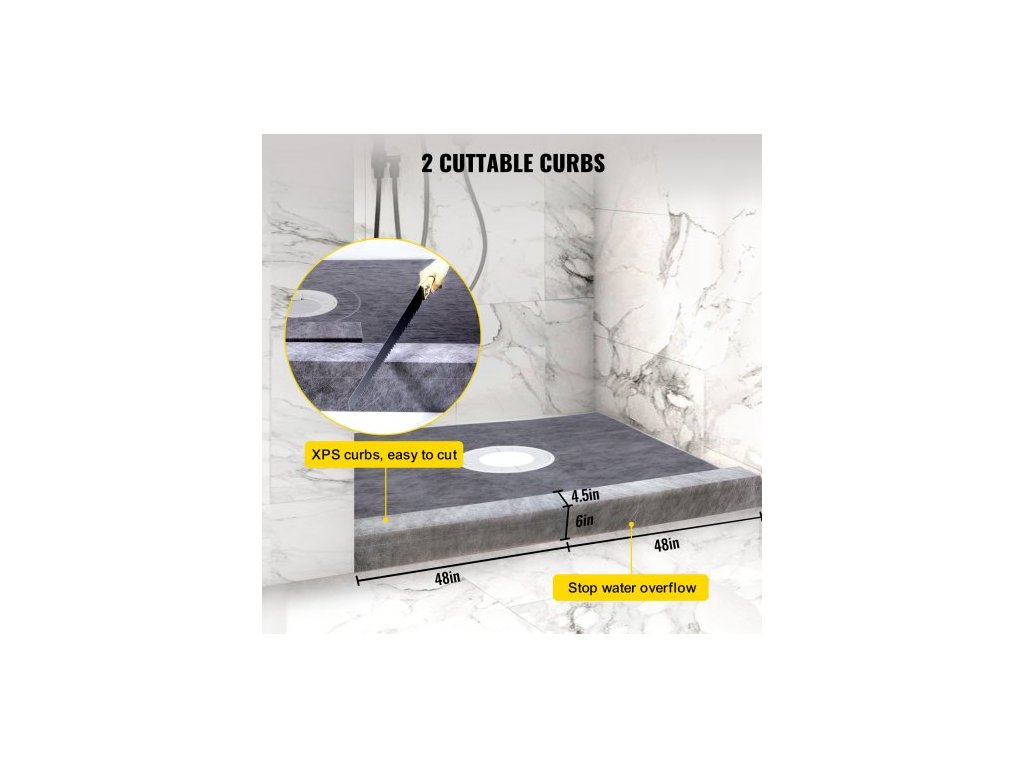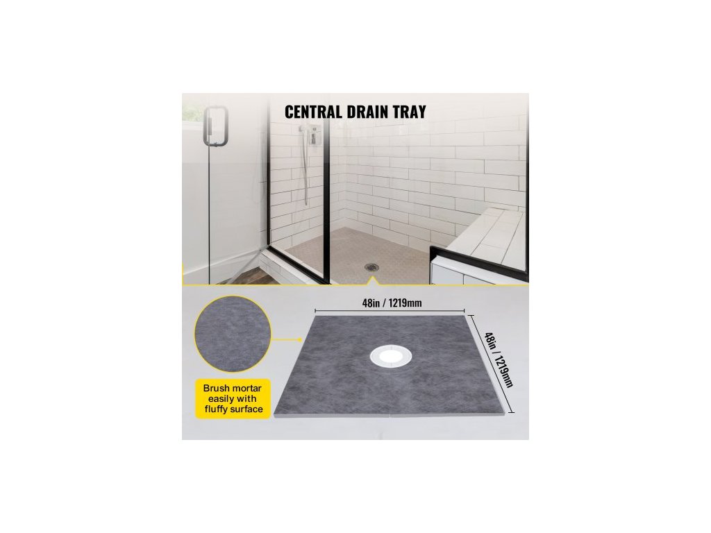 Sada sprchového zábrany , vodotěsná sprchová zábrana 121,9 x 121,9 cm s centrální lepící přírubou z ABS 10,2 cm, nerezový rošt 10,2 cm, 2 řezatelné sprchové zábrany a zednická lžíce, spádové tyče sprchové vaničkyCentrální odtoková miska