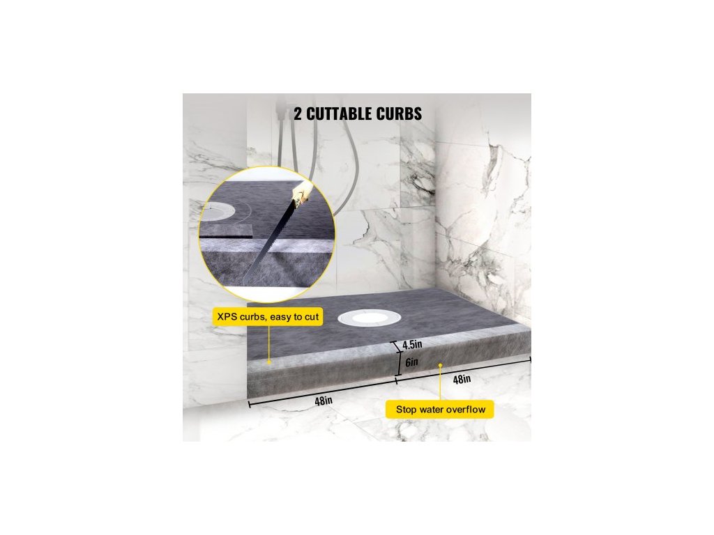 Sada sprchového zábrany , vodotěsná sprchová zábrana 48"x72" s centrální lepící přírubou z PVC 4", nerezový rošt 4", 2 řezatelné sprchové zábrany a zednická lžíce, spádové tyče sprchové vaničky vhodné pro koupelnuCentrální odtoková vanička