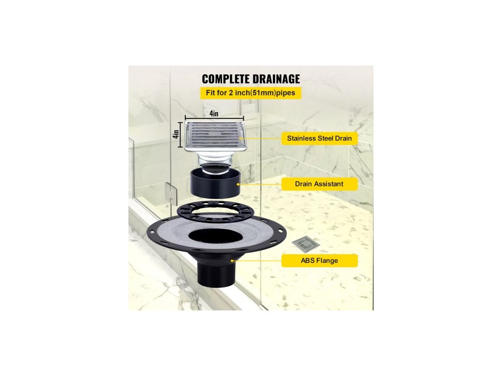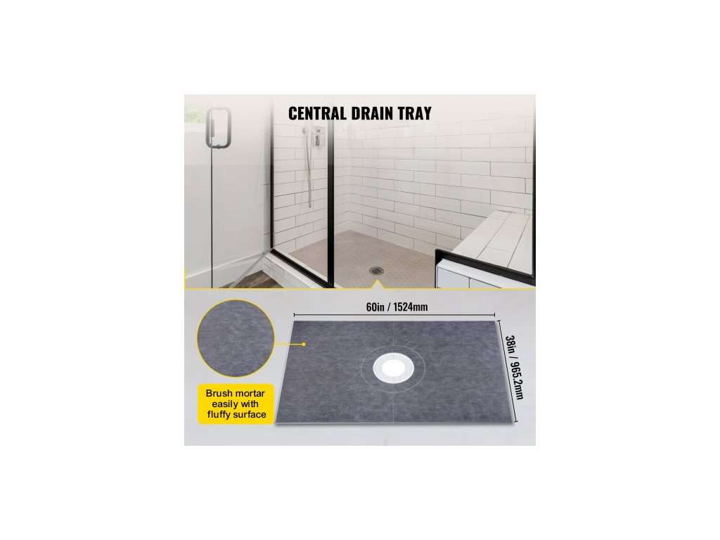 Sada sprchového zábrany , vodotěsná sprchová zábrana z ABS 38" x 60" s centrální lepící přírubou 4", nerezový rošt a stěrka 4", řezatelná sprchová zábrana, sprchová vana vhodná do koupelnyCentrální odtoková miska