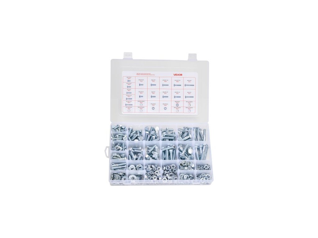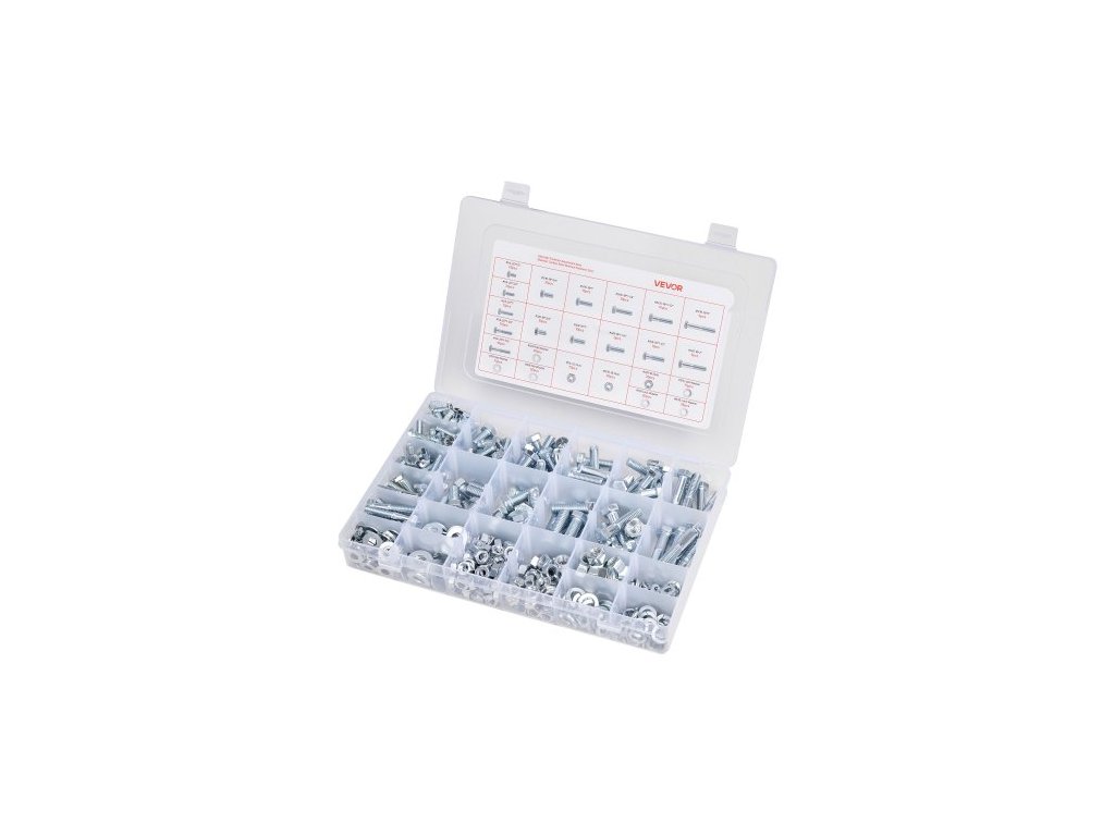 Sada šroubů a matic 566 ks, imperiální šrouby s hlavou a ploché podložky, legovaná ocel 1/4-20, 5/16-18, 3/8-16, pro montáž nábytku / vybavení / vozidel, pozinkovaná bílá