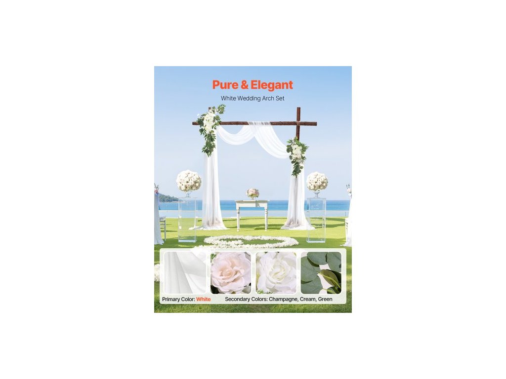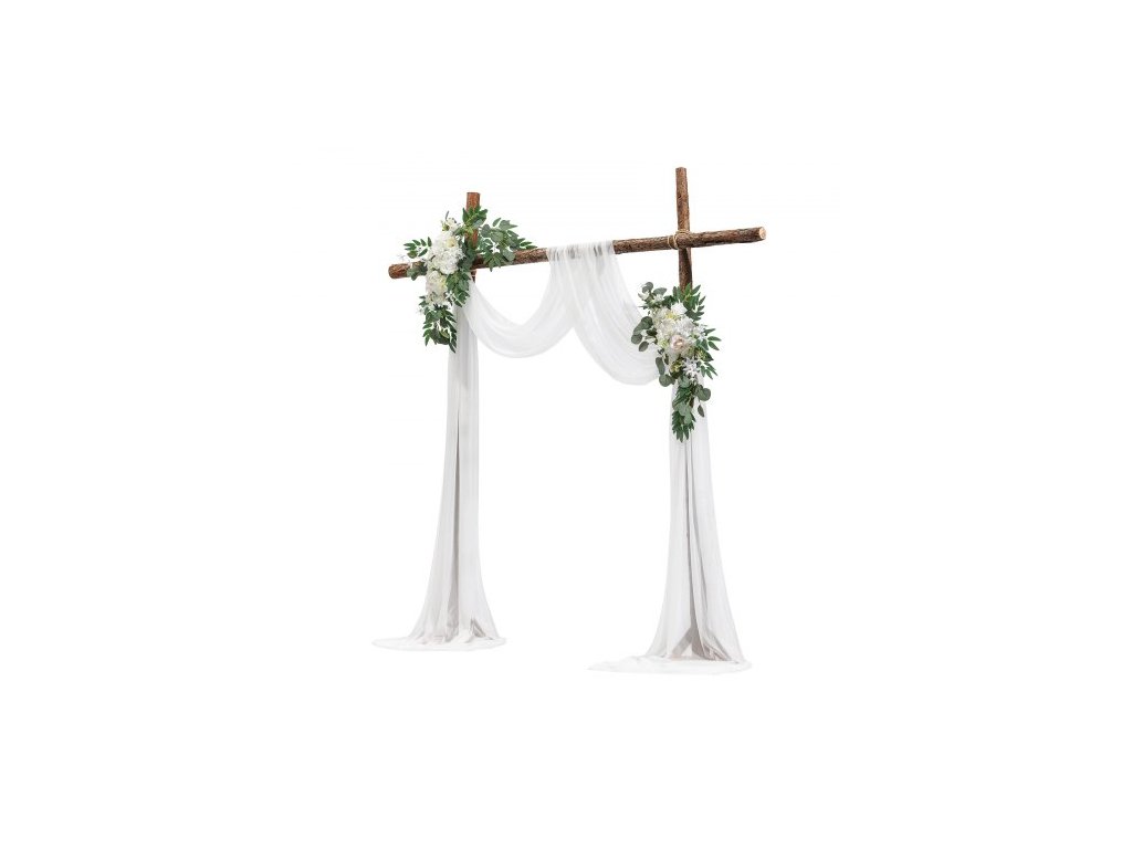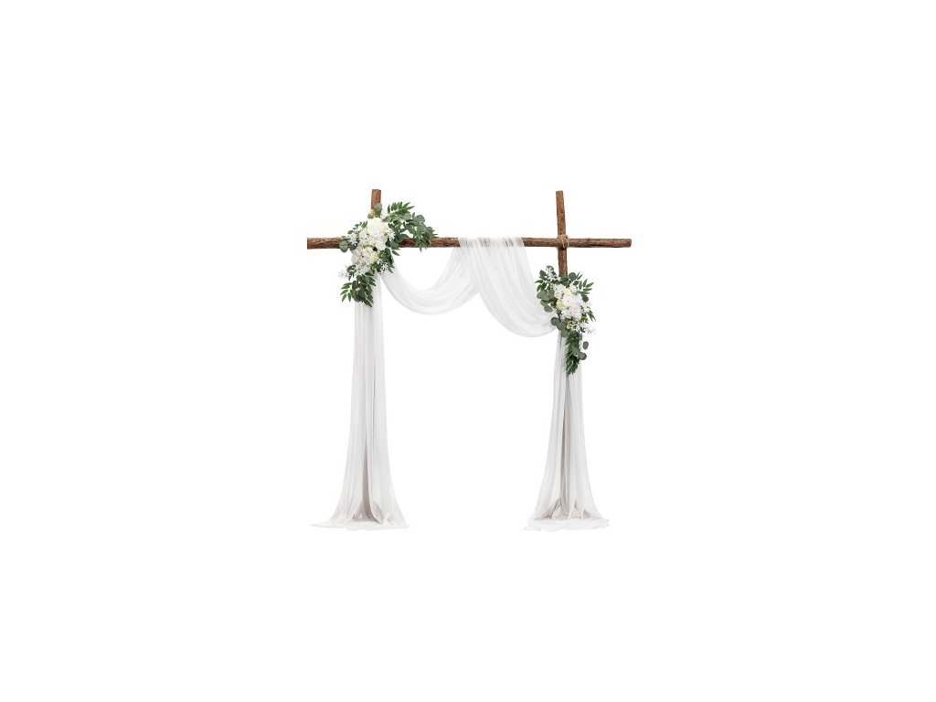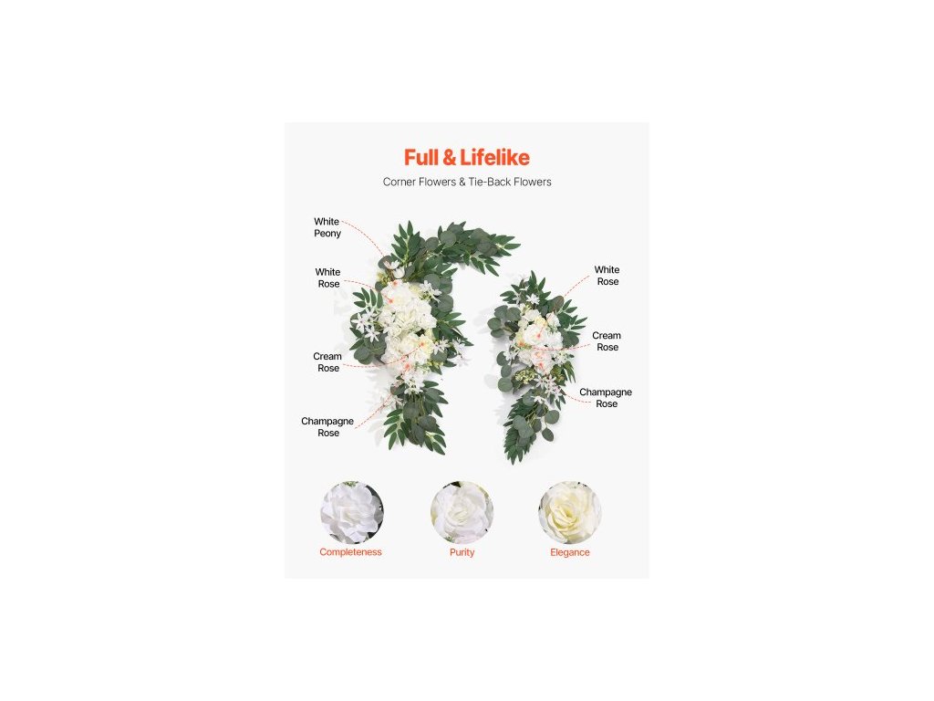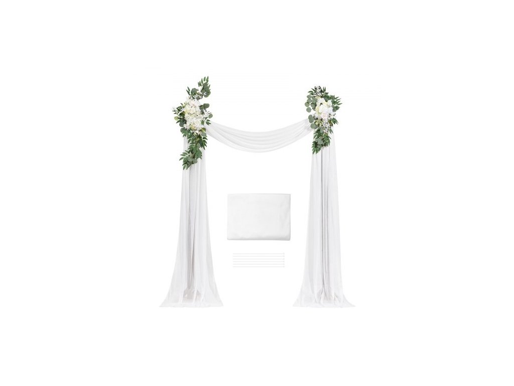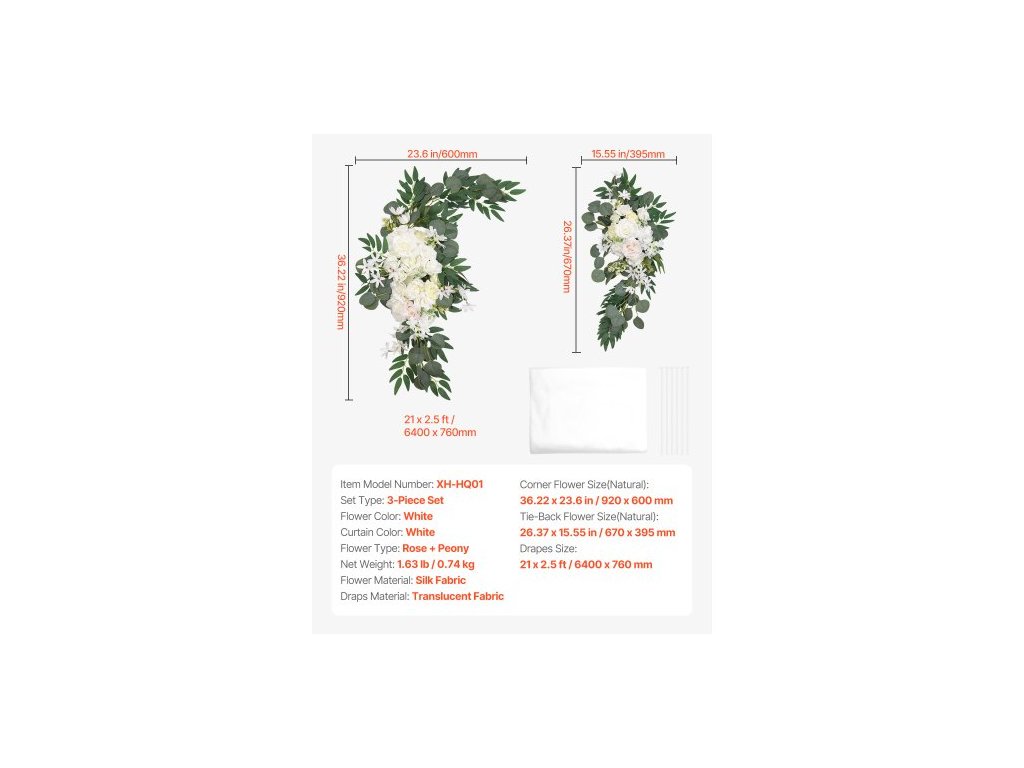 Sada umělých květin pro svatební oblouk, bílé květiny pro svatební oblouk se závěsy (balení 3 ks) - 2 ks květinové aranžmá, 1 ks průsvitných závěsů, pro obřadní kytice, dekorace na pozadí recepce