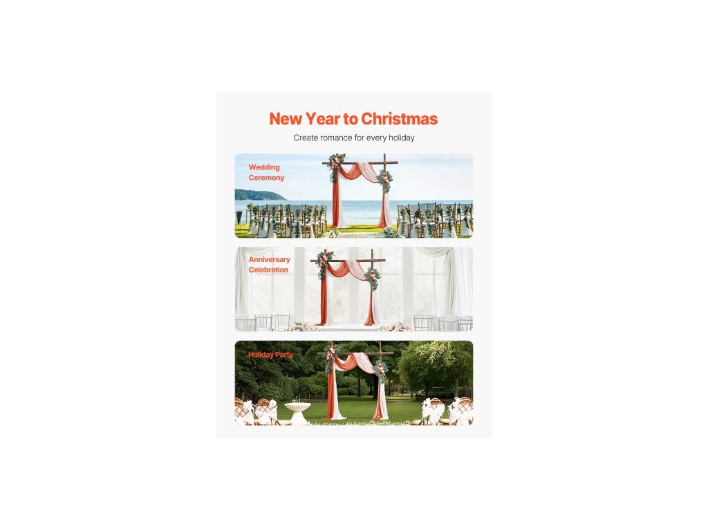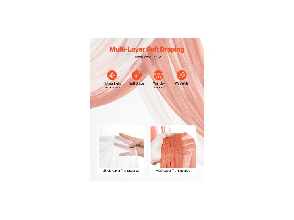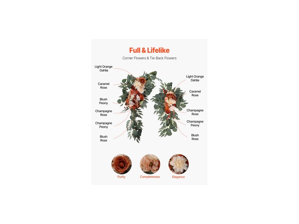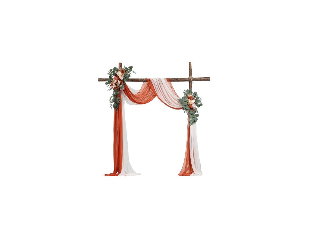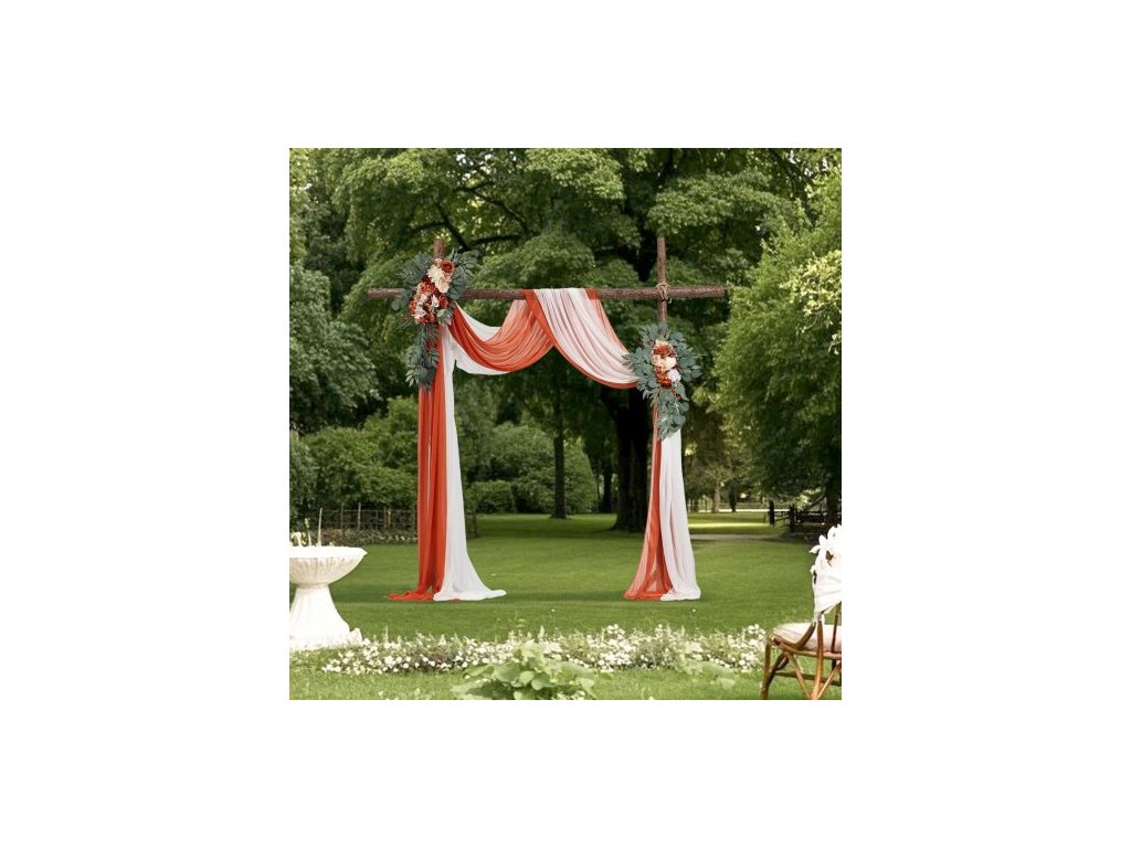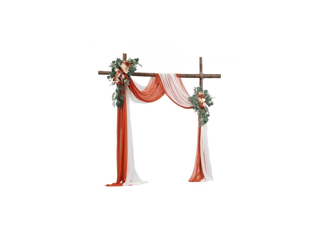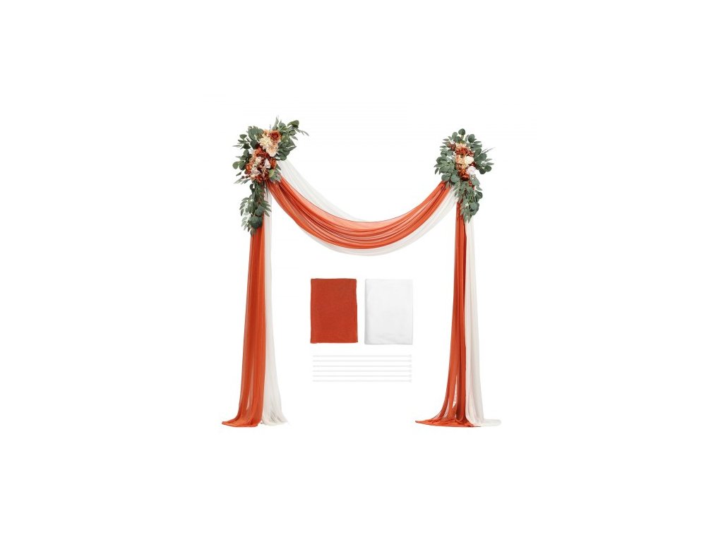 Sada umělých květin pro svatební oblouk, oranžové květiny pro svatební oblouk se závěsy (balení 4 ks) - 2 ks květinové aranžmá, 2 ks průsvitných závěsů, pro obřadní kytice, dekorace na pozadí recepce