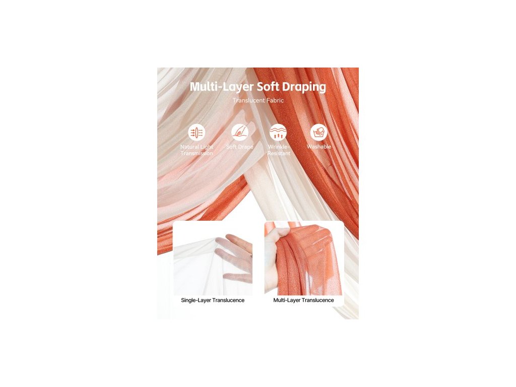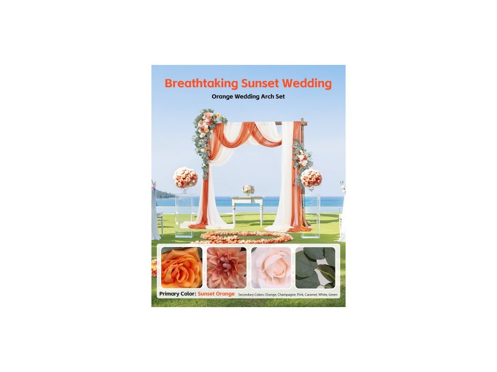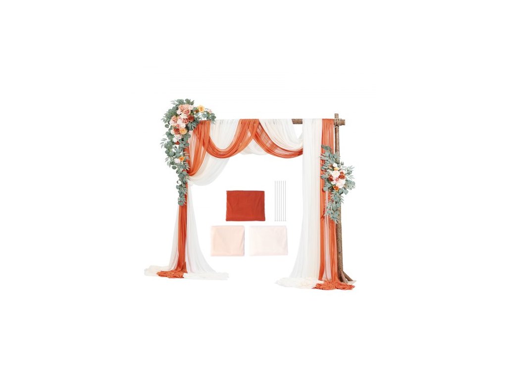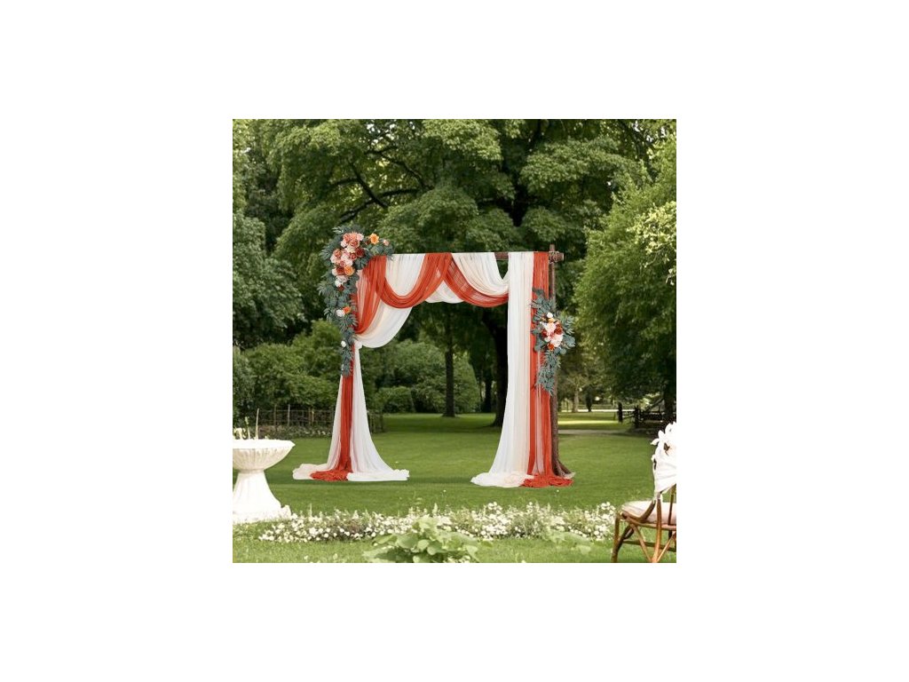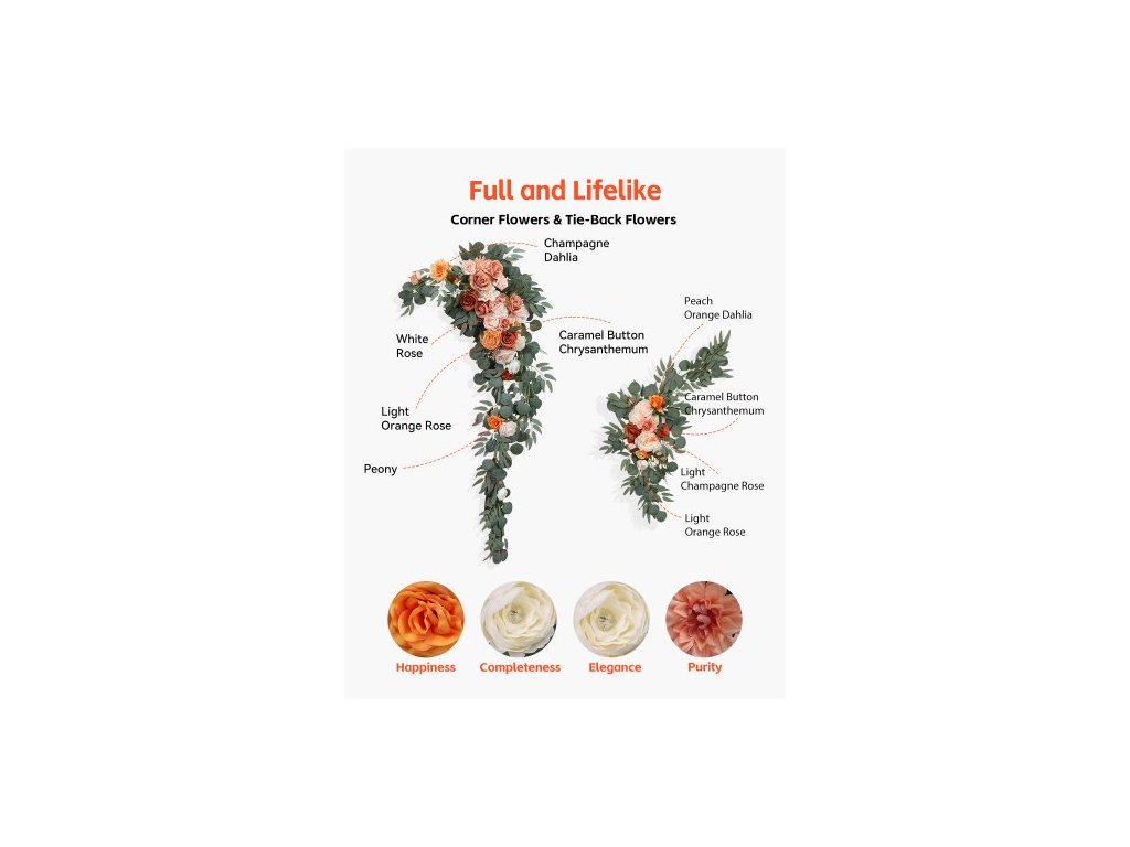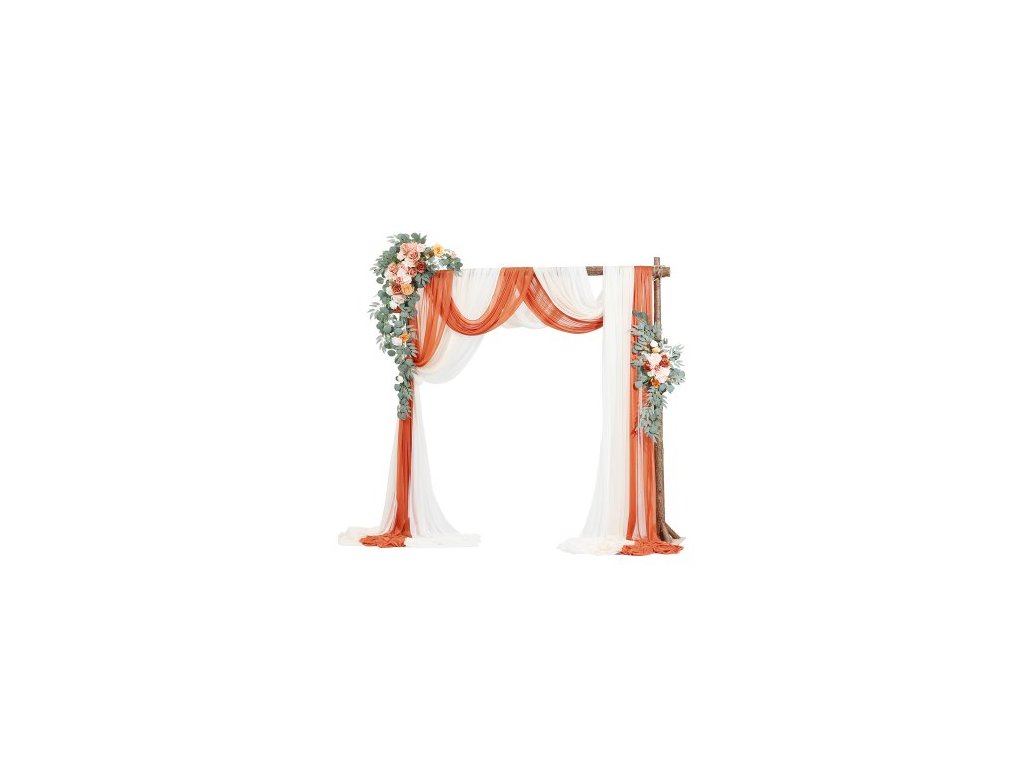 Sada umělých květin pro svatební oblouk, oranžové květiny pro svatební oblouk se závěsy (balení 5 ks) - 2 ks květinové aranžmá, 3 ks průsvitných závěsů, pro obřadní kytice, dekorace na pozadí recepce
