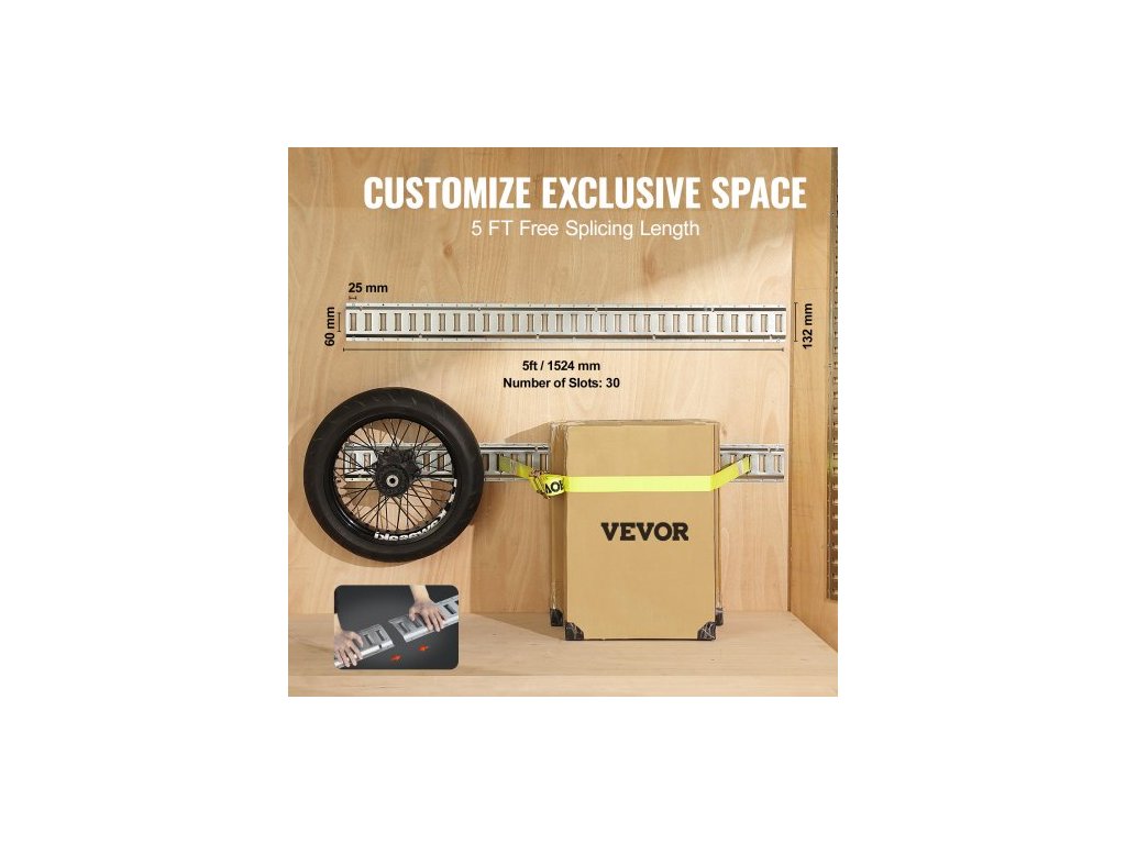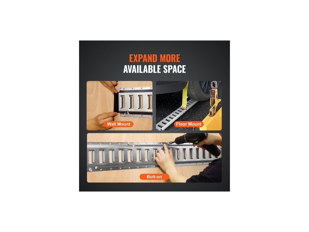 Sada upevňovacích lišt E Track, 24dílná sada 5' E-Tracks obsahuje 8 ocelových lišt, 8 kotev s O-kroužky a 8 úchytů s D-kroužky, všestranné upevňovací příslušenství pro nákladní motocykly a motorky, nosnost 2000 liberOdolná podpěra