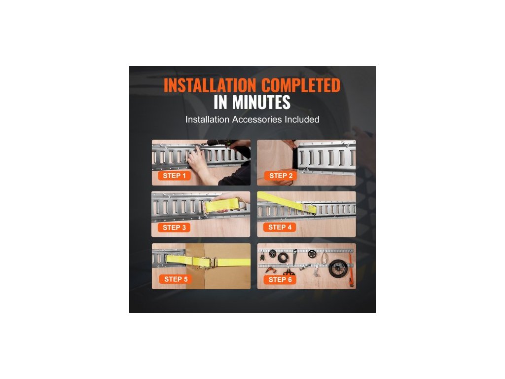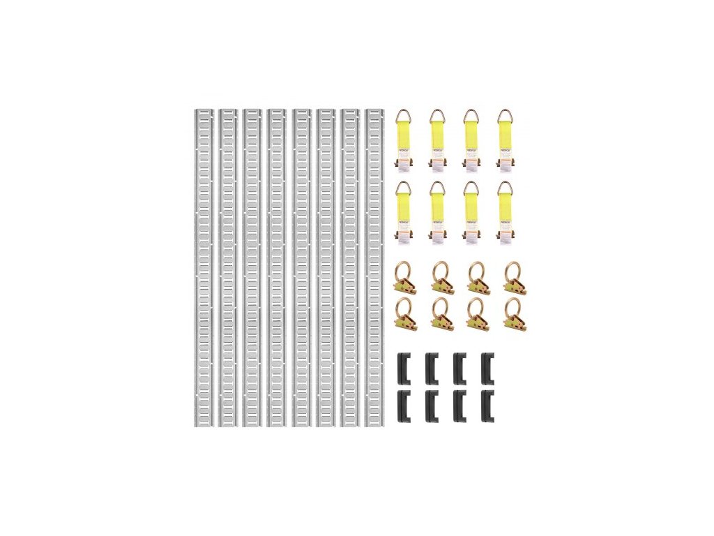 Sada upevňovacích lišt E Track, 34dílná sada 5FT E-Track obsahuje 8 ocelových lišt a 2 jednotlivé drážky a 8 O-kroužků a 8 úchytů s D-kroužkem a 8 koncovými krytkami, příslušenství pro upevnění nákladu, motocyklů a kolOdolná opora