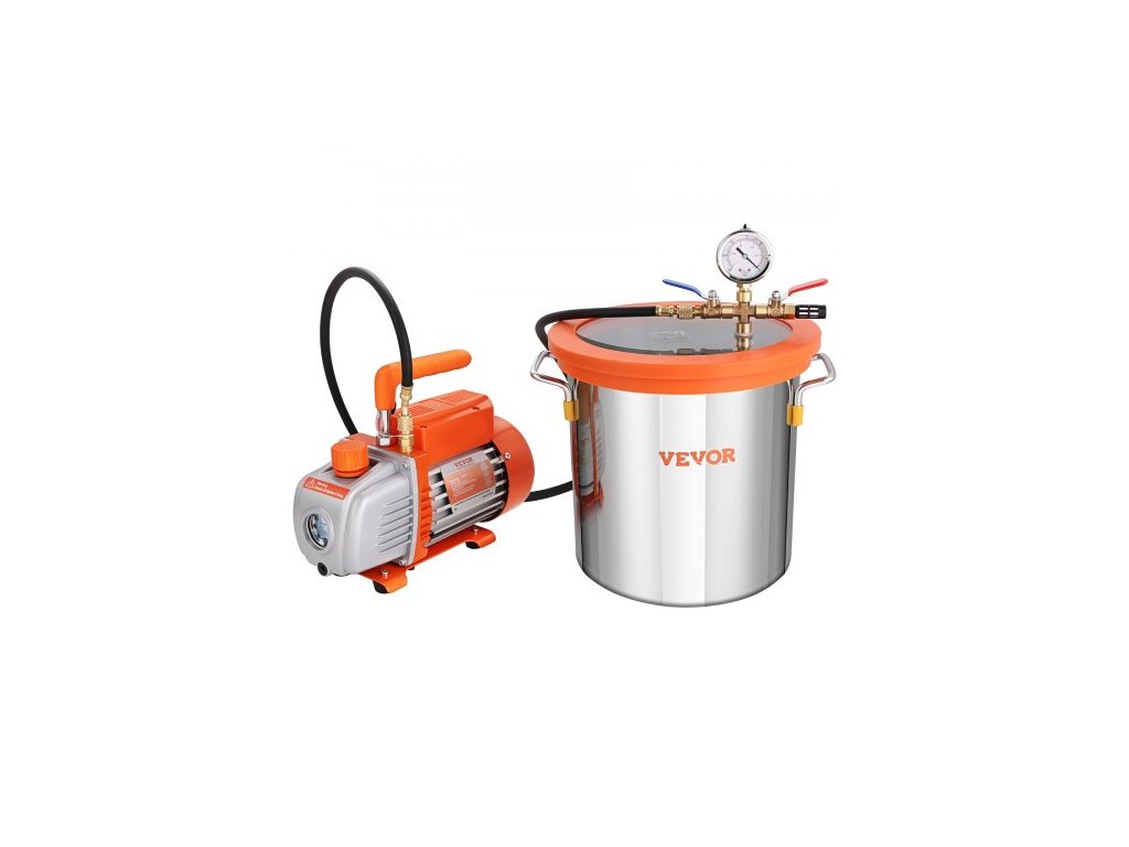 Sada vakuové komory 11,4 l a čerpadla 3,5 CFM, víko z tvrzeného skla, sada vakuové odplyňovací komory, jednostupňové vakuové čerpadlo s 250ml olejovou lahví, pro stabilizaci dřeva, odplyňování silikonů a epoxidů