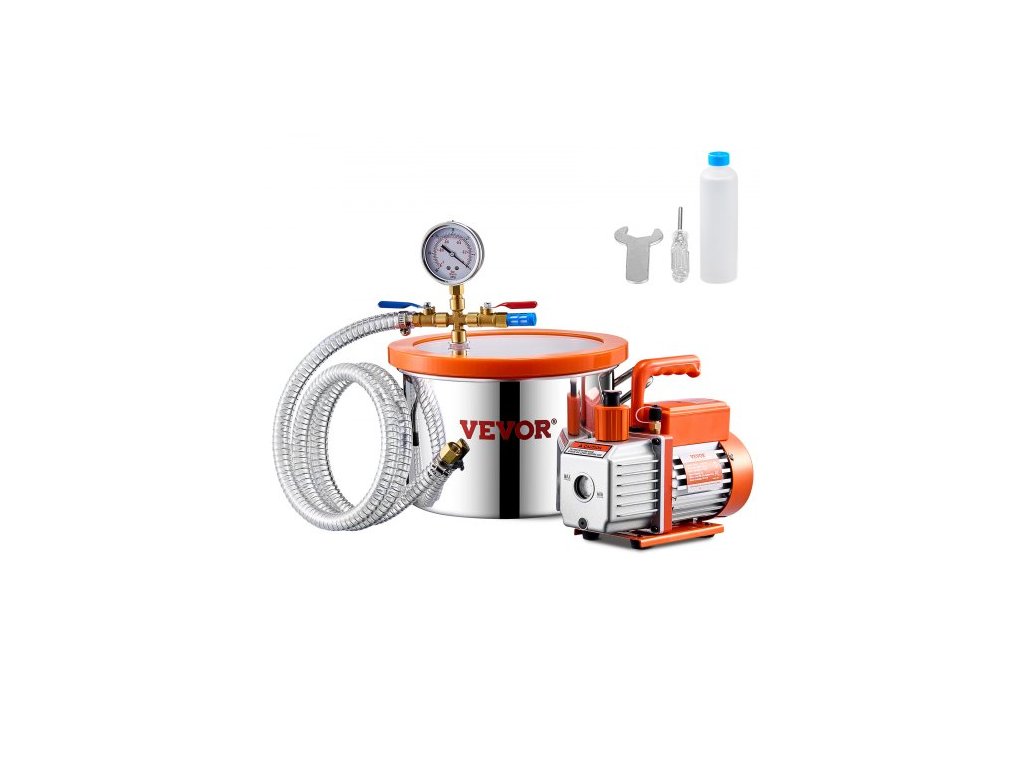 Sada vakuové komory 5,7 l (1,5 galonu) a čerpadla 100 l/min (3,5 CFM), komora z nerezové oceli, jednostupňová odplyňovací komora s vakuovým čerpadlem, s akrylovým víkem, olej, hadice 1,5 m (4,92 stopy), pro odplyňování pryskyřičných silikonových