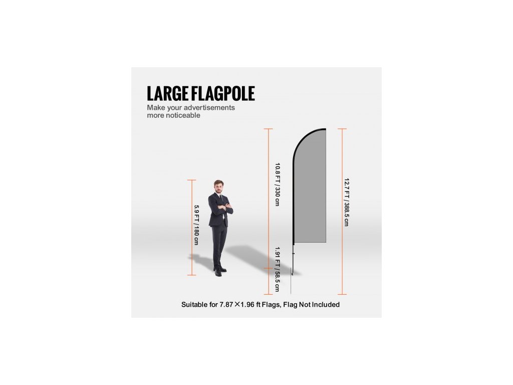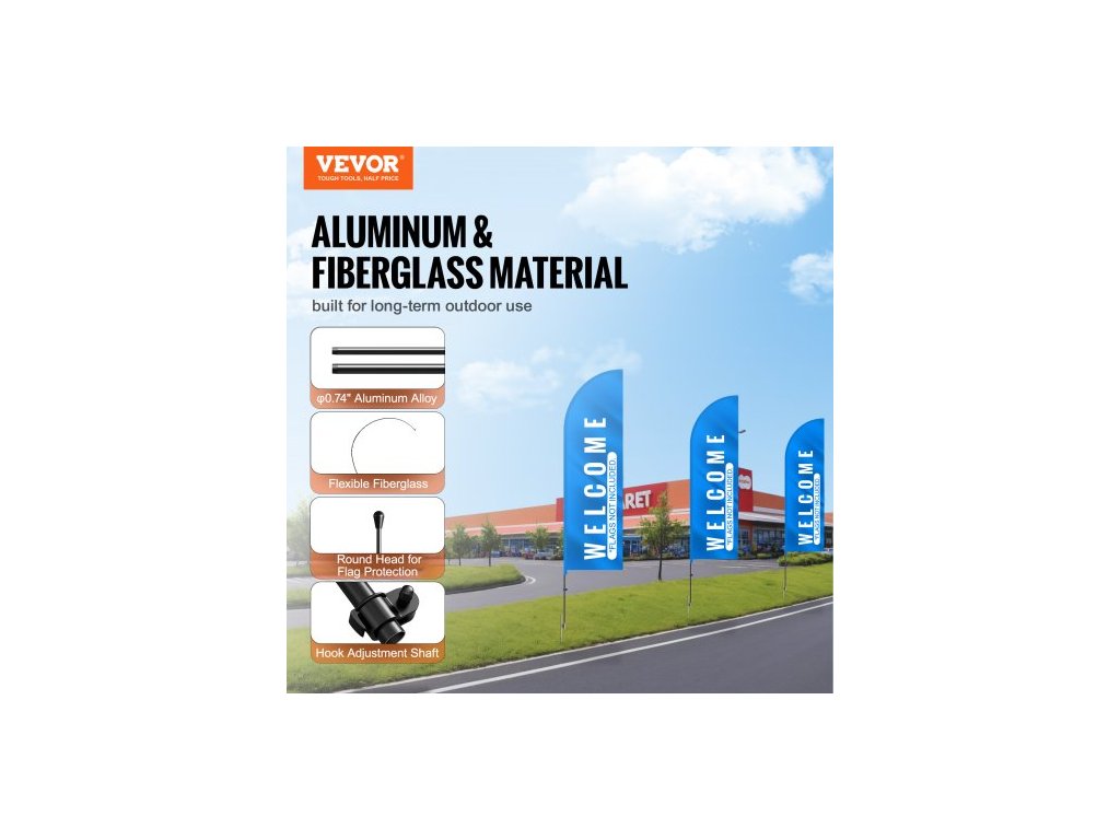 Sada pro vlajkový stožár s peřím, 2 sady stožárů Swooper 12,7 ft, vlajkové stožáry pro firmy, reklamu a venkovní použití, s kolíky do země a přepravní taškou (vlajka není součástí balení)Odolný materiál
