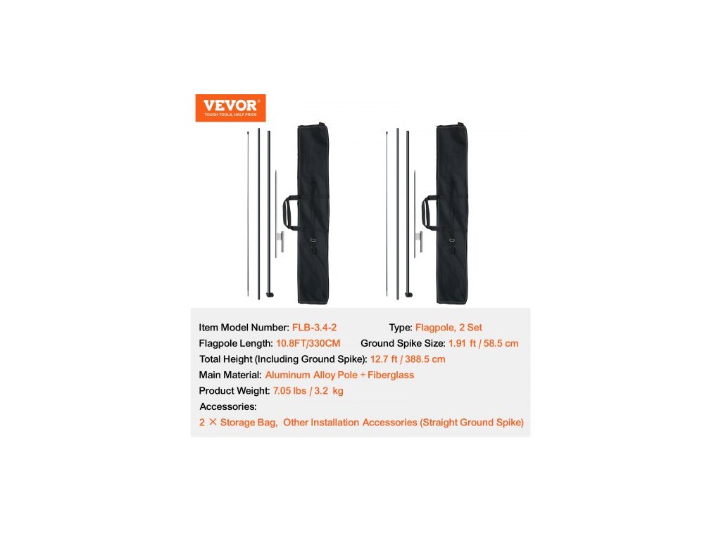 Typ: Stožár, 2 sady,Délka stožáru: 10,8 ft/330 cm,Velikost hrotu do země: 1,91 ft/58,5 cm,Číslo modelu položky: FLB-3.4-2,Hmotnost výrobku: 7,05 lbs/3,2 kg,Celková výška (včetně hrotu do země): 12,7 ft/388,5 cm,Hlavní materiál: Hliníková slitina tyče + sklolaminát