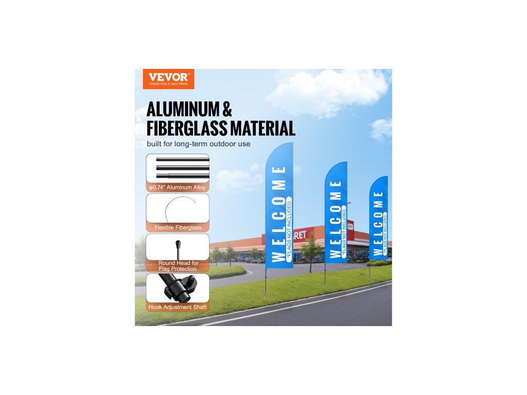 Sada stožáru s peřím, 3 sady stožárů na vlajky Swooper 16,3 ft, stožáry na vlajky pro firemní a reklamní účely, venkovní, s kolíky do země a přepravní taškou (vlajka není součástí balení)Odolný materiál