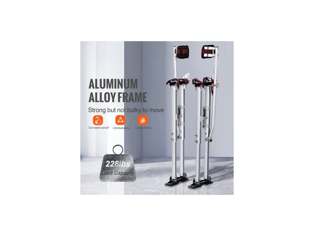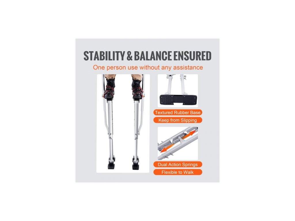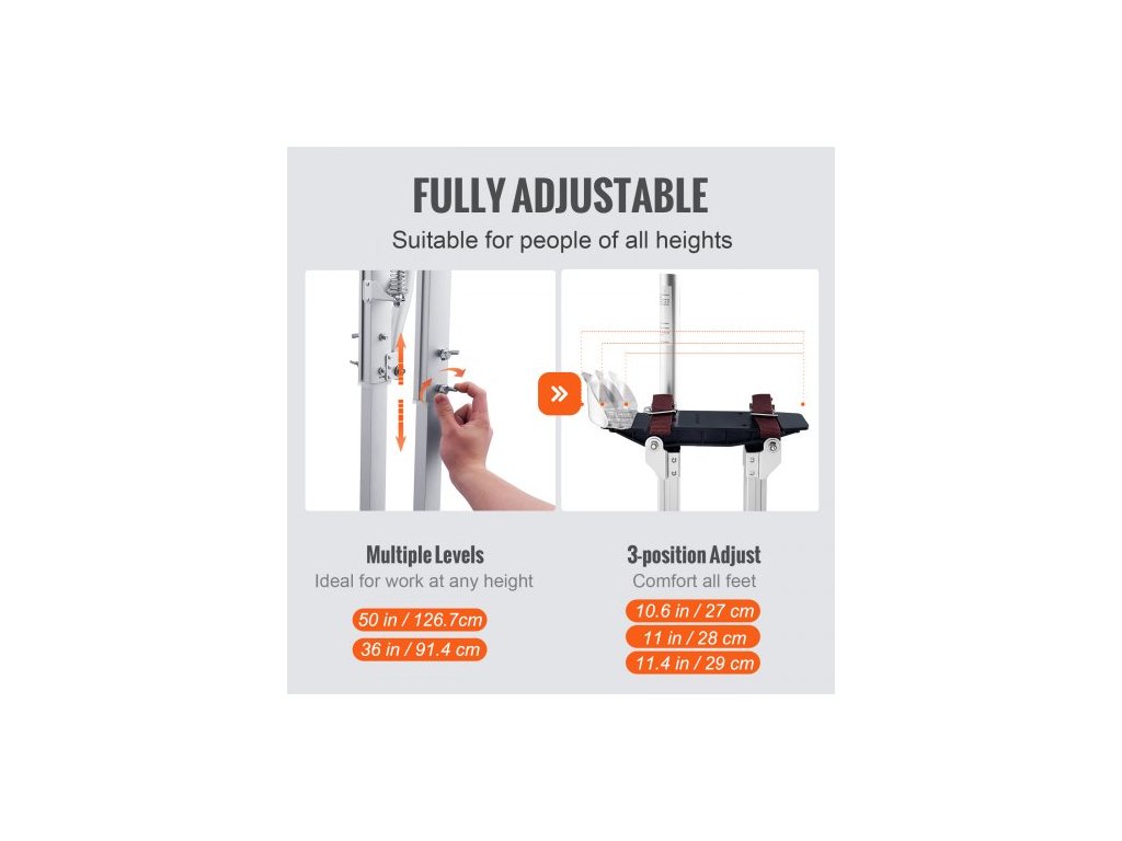 sádrokartonové chůdy, 91,4 cm-127 cm nastavitelné hliníkové chůdy na nářadí s ochrannými chrániči kolen, odolné a protiskluzové pracovní chůdy pro malování sádrokartonu, chůzi, lepení, stříbrnéNastavitelné kovové přezky