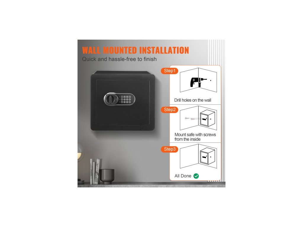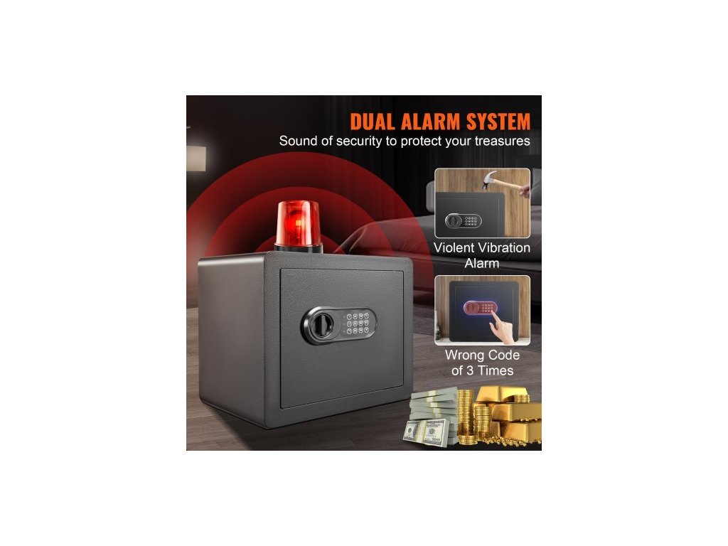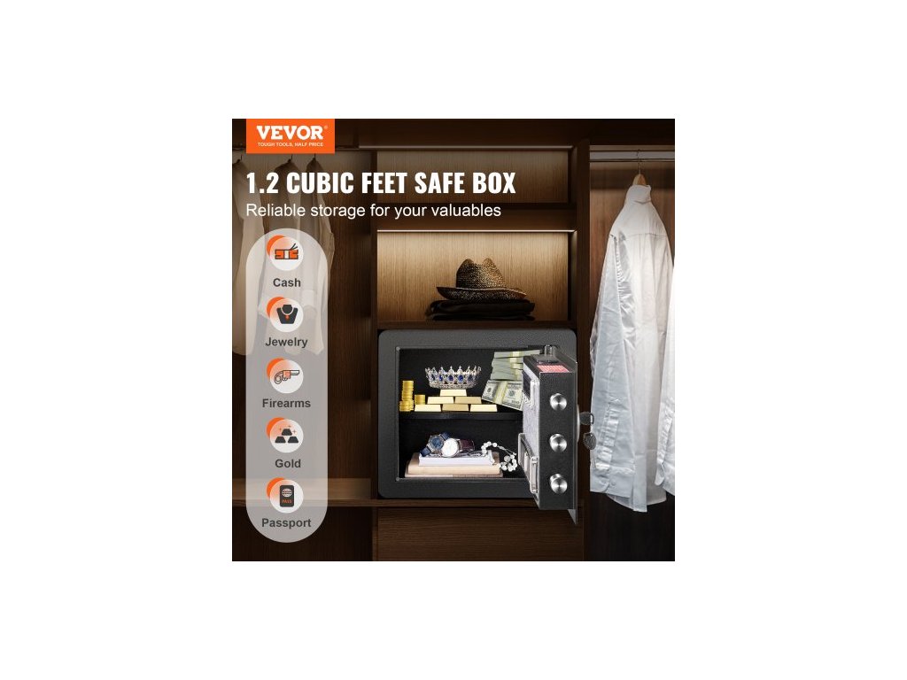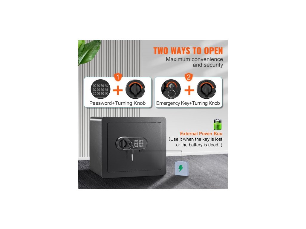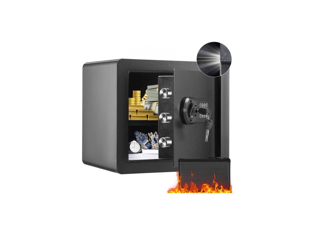 Trezor , domácí trezor o objemu 33,9 l, ocelový bezpečnostní trezor s digitální klávesnicí a 2 klíči, skříňový trezor s nehořlavým vakem, chrání hotovost, zlato, šperky a dokumenty pro domácnost, hotel, 40,1 x 30,0 x 35,1 cmSpolehlivý systém dvojitého zámku