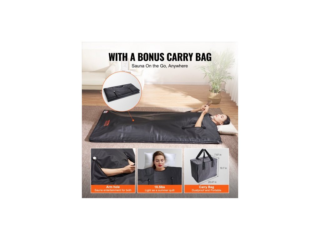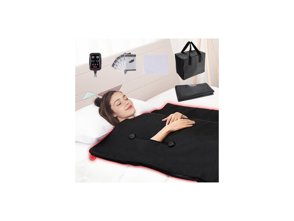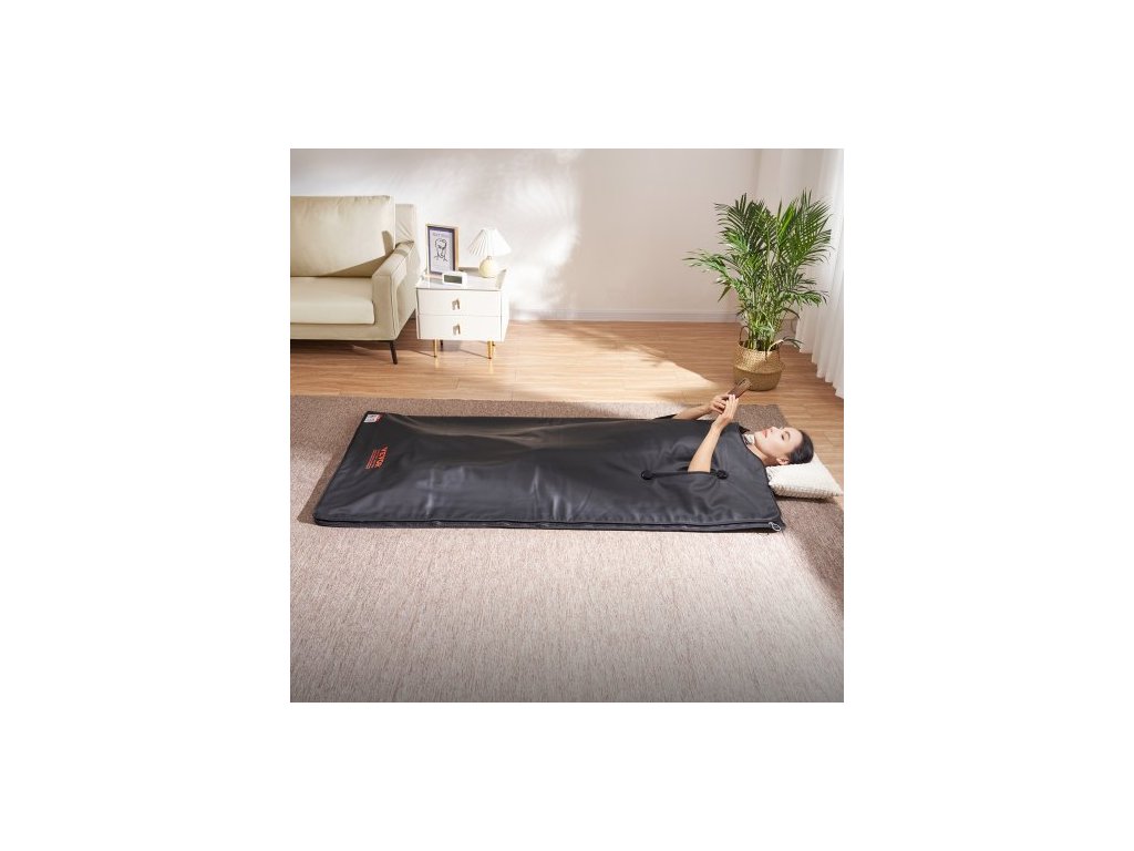 Saunová deka pro detoxikaci, přenosná infračervená sauna pro domácnost s otvory pro ruce pro pohodlí, nastavitelný teplotní rozsah 1-6 úrovní 35-85 °C, časovač 1-60 minut, vyhřívání z uhlíkových vláken