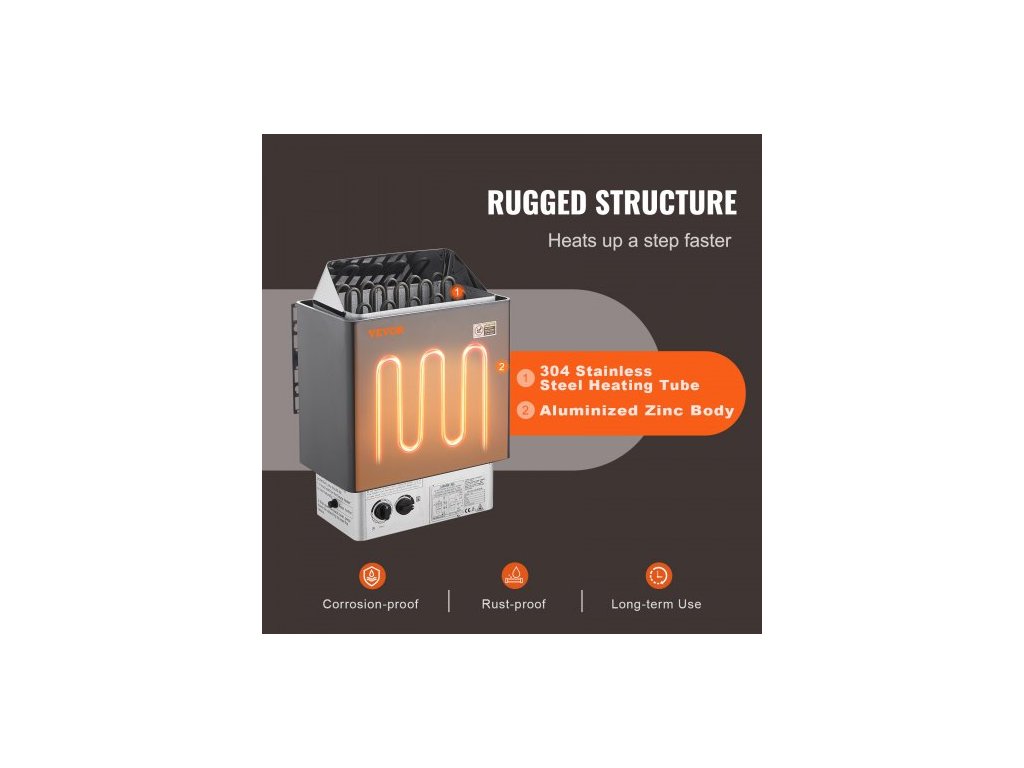 Saunová kamna , 8KW elektrická saunová kamna, přenosná vnitřní/venkovní saunová kamna 400V 3N s 3hodinovým časovačem, vestavěné ovládání pro domácí použití, komerční hotely, vířivky, sprchy o objemu 8-12 m³, max. 110℃