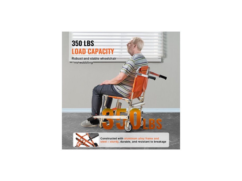 Schodišťový vozík EMS, nosnost 159 kg, skládací hliníkový nouzový schodišťový vozík se 2 kolečky, přenosný schodišťový vozík pro sanitky, hasiče, evakuaci pro seniory a osoby se zdravotním postižením