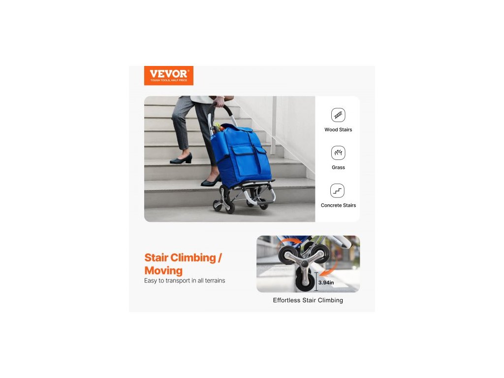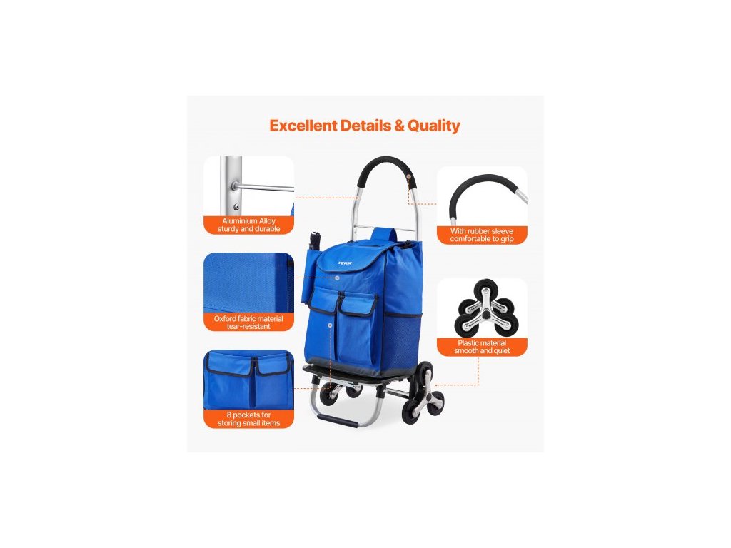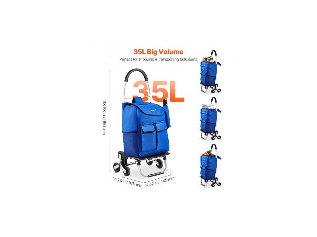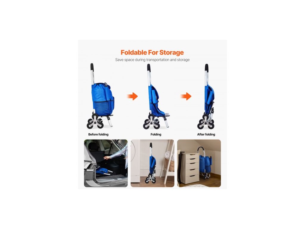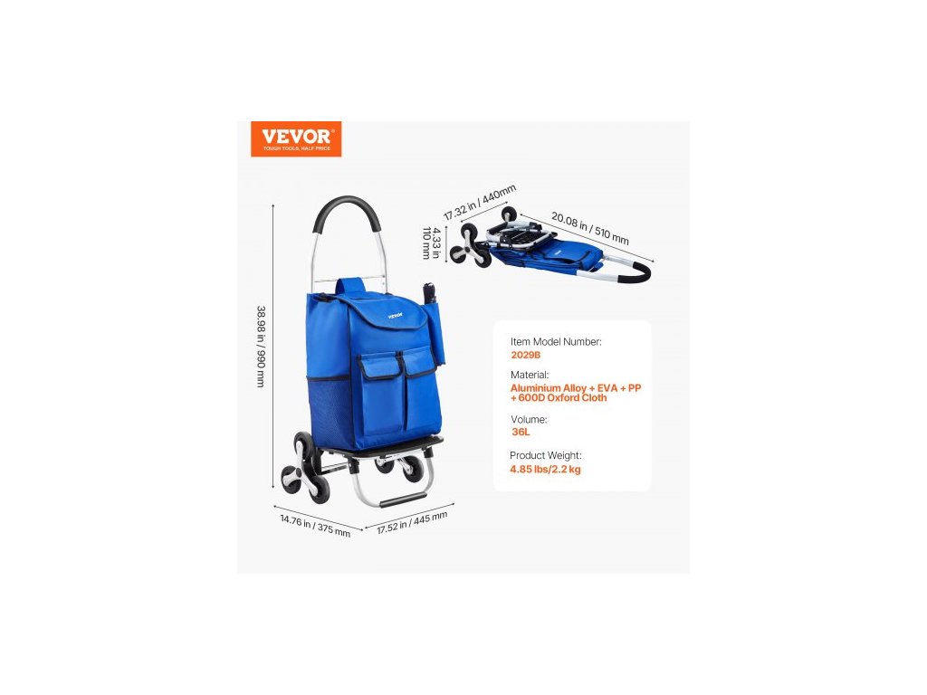 Schodolezecký vozík, skládací nákupní vozík 36 l, nákupní vozík na potraviny, ruční vozík na prádlo s 6 kolečky a oxfordskou látkovou taškou, skládací vozík na nákupy, potraviny, prádelnu, stoupání do schodůVelký schodolez 36 l
