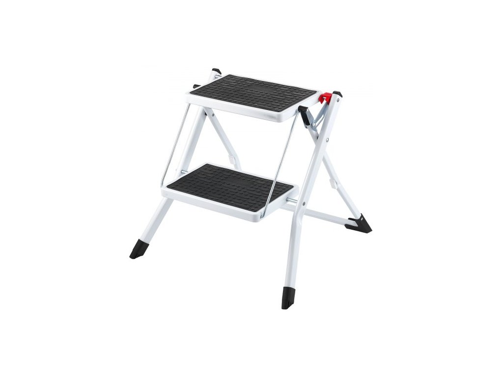 Schůdky 2-stupňové, nosnost 150 kg, ergonomické skládací ocelové schůdky s širokým protiskluzovým pedálem, robustní schůdky pro dospělé a batolata, víceúčelové pro domácnost, kuchyň, kancelář, obytné vozy