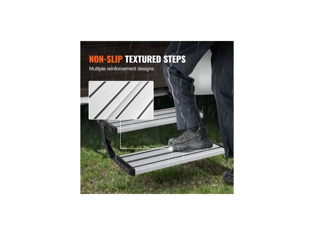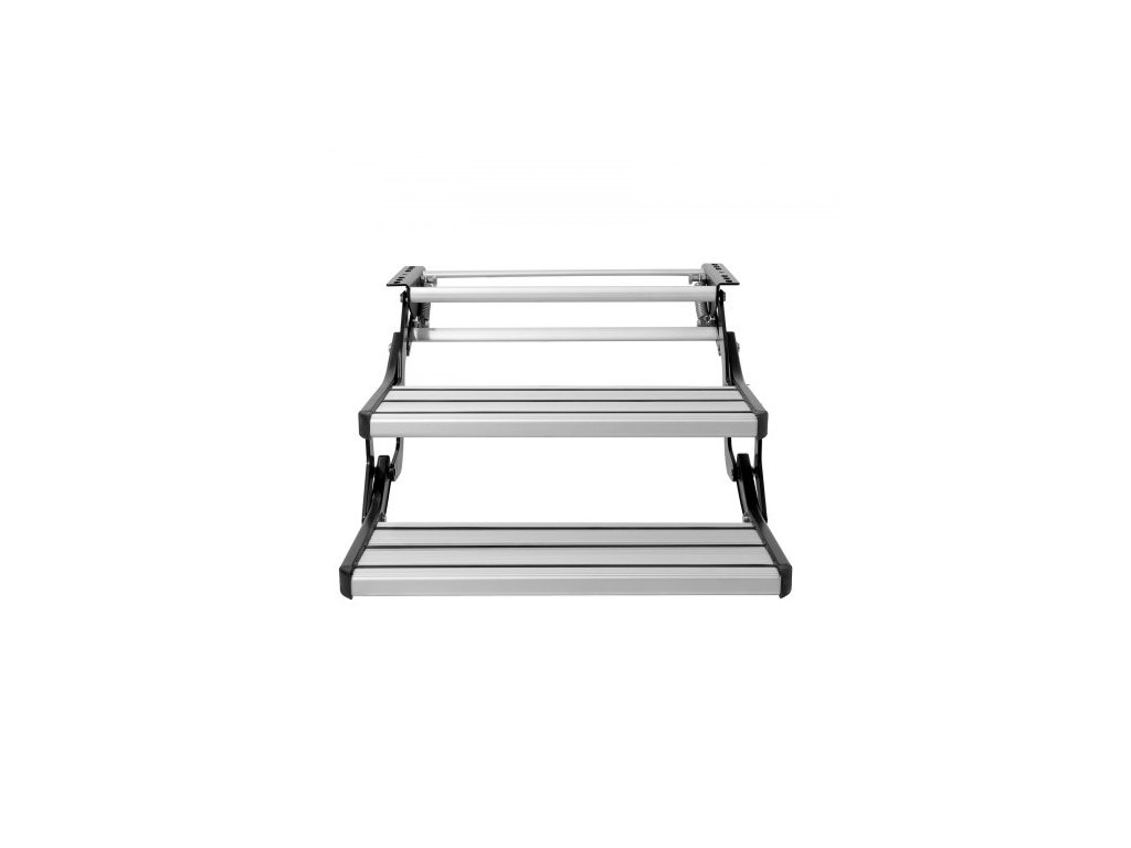 Schůdky pro obytné vozy, 2stupňové, manuálně zatahovací schody pro obytné vozy, skládací, nosnost 200 kg, schody z hliníkové slitiny, zesílený ocelový plech, protiskluzové schody pro bezpečný vstup a výstup, schody pro obytné vozy, přívěsy a karavany