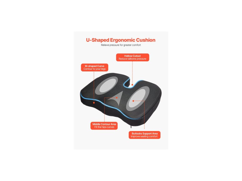 Sedák , chladicí gel + paměťová pěna, sedák pro invalidní vozík s úlevou od tlaku, výřezem ve tvaru U a odnímatelným potahem, lehký a přenosný na cesty, do auta, kanceláře, letadlaErgonomický design