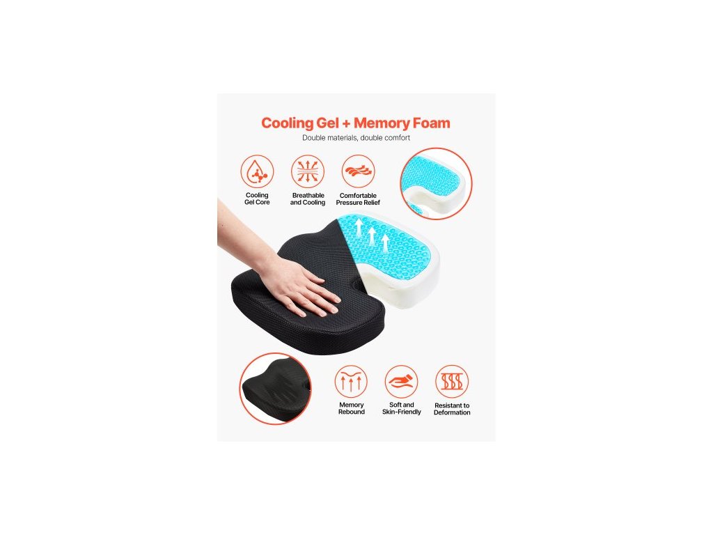 Sedák , chladicí gel + paměťová pěna, sedák pro invalidní vozík s úlevou od tlaku, výřez ve tvaru U a odnímatelným potahem, lehký a přenosný na cesty, do auta, kanceláře, letadla