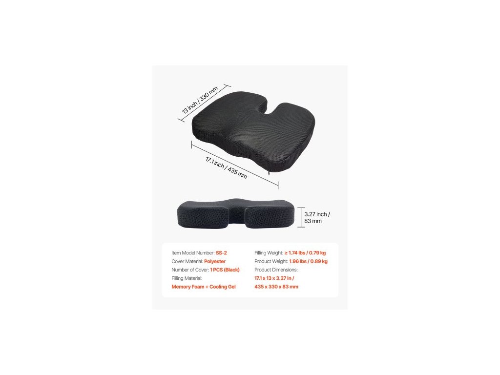 Hmotnost výplně: ≥ 0,79 kg, Číslo modelu položky: SS-2, Materiál potahu: Polyester, Hmotnost výrobku: 0,89 kg, Počet potahů: 1 ks (černý), Výplň: Paměťová pěna + chladicí gel, Rozměry výrobku: 435 x 330 x 83 mm