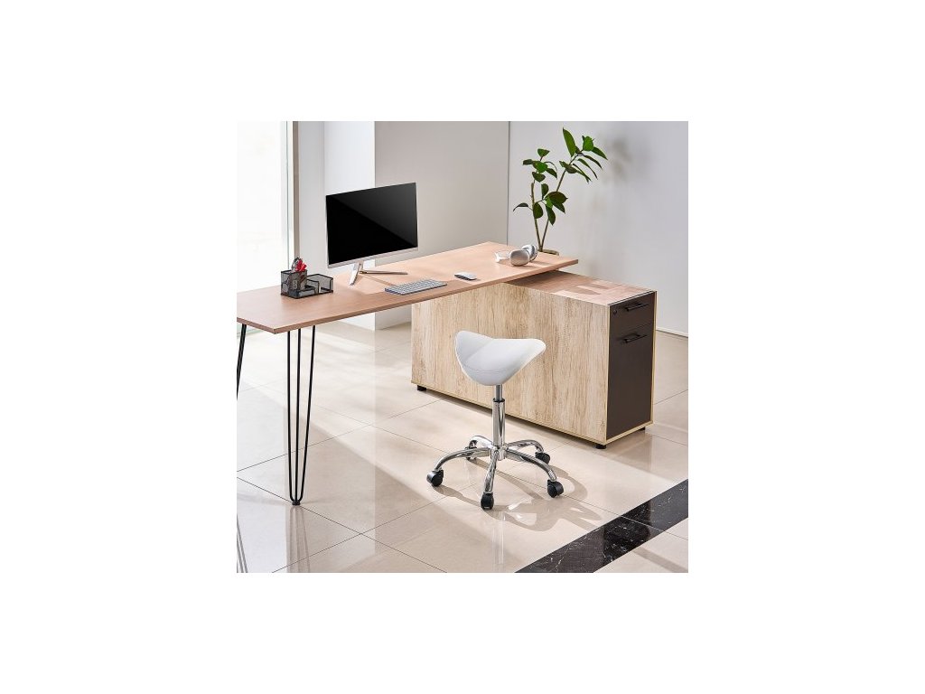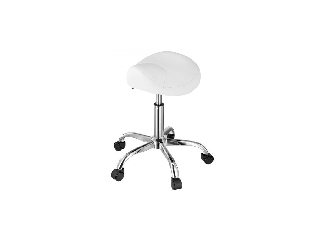 Sedlová židle s kolečky, nosnost 200 kg, ergonomická kolečková židle, výškově nastavitelná, zesílená PU kůže, otočná sedlová židle pro salon, lázně, masáže, tetování, kliniky, bílá