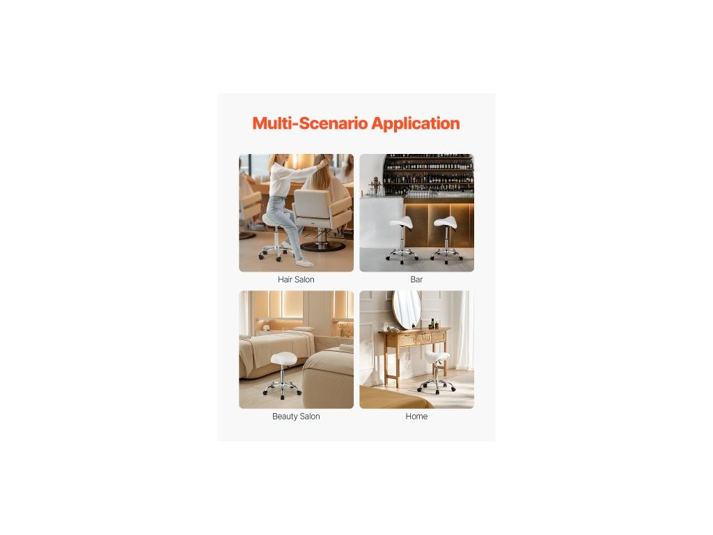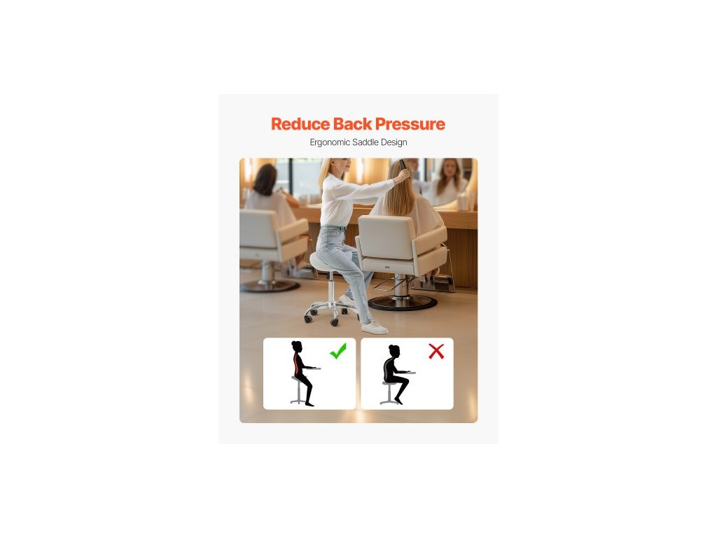 Sedlová židle s kolečky, nosnost 450 liber, ergonomická kolečková židle, výškově nastavitelná otočná sedlová židle z tlusté PU kůže pro salon, lázně, masáže, tetování, kliniky, bílá360° PU kolečka