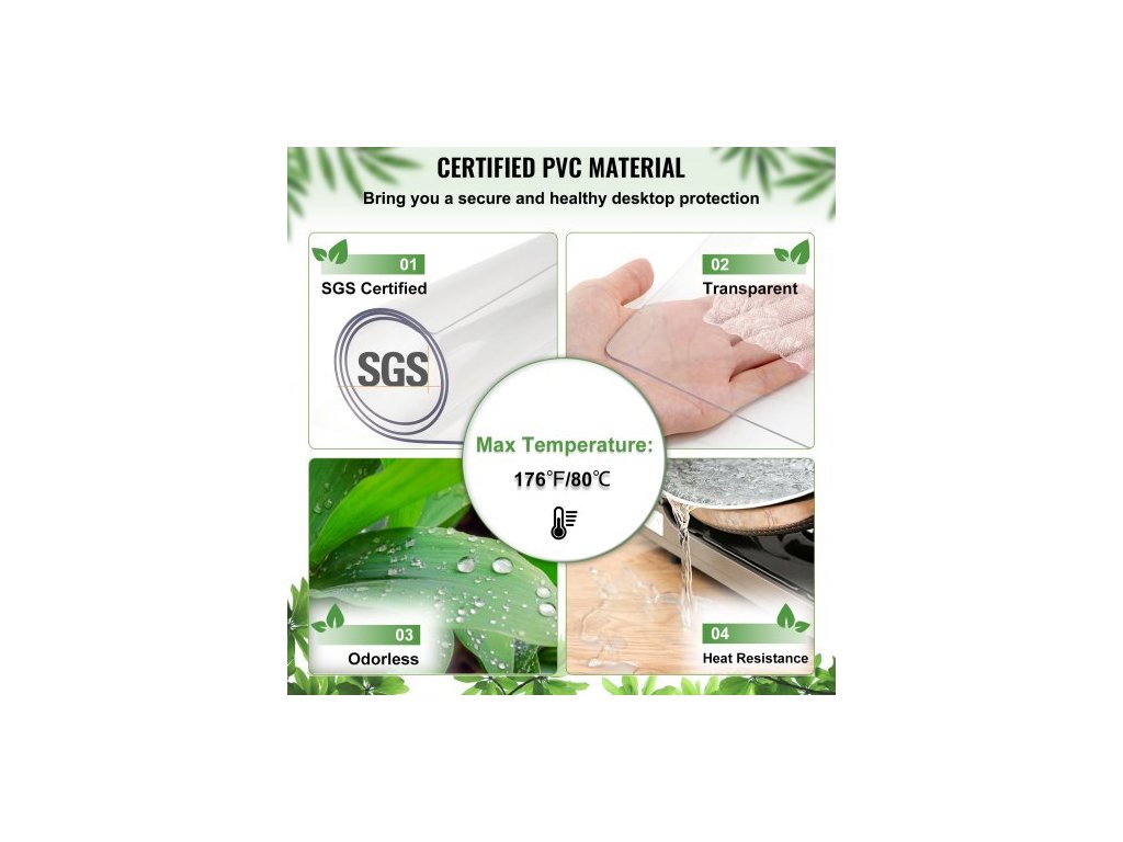 Tloušťka: 1,5 mm,Tvar: Obdélník,Maximální teplota: 80 °C/ 176 °F,Rozměry položky: 42 x 84 palců / 107 x 213,4 cm,Barva: Průhledná,Materiál: PVC,Hmotnost položky: 10,1 lbs / 4,6 kg