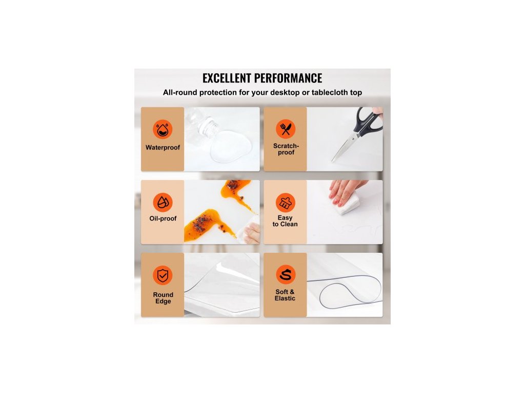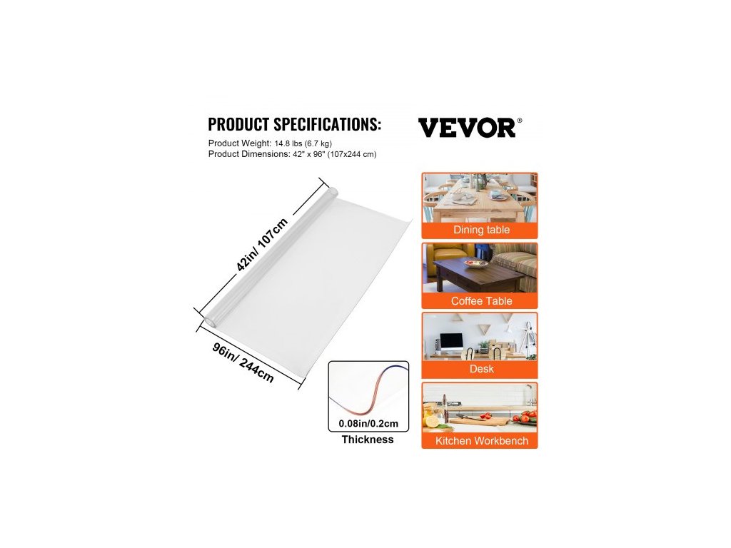 Silný potah na stůl 96x 42 palců Silný průhledný chránič stolu Průhledný PVC ubrus Chránič desky stolu 2 mm Silný potah na stůl Obdélníkové podložky na stůl pro jídelní stůlBezpečnější použití