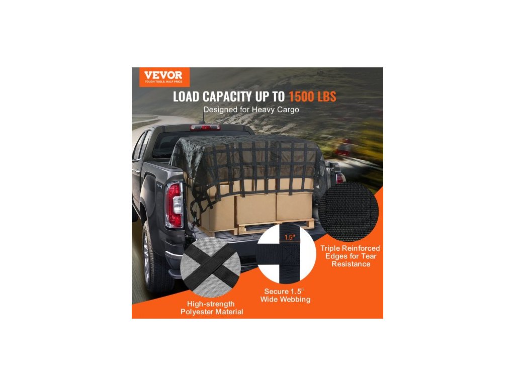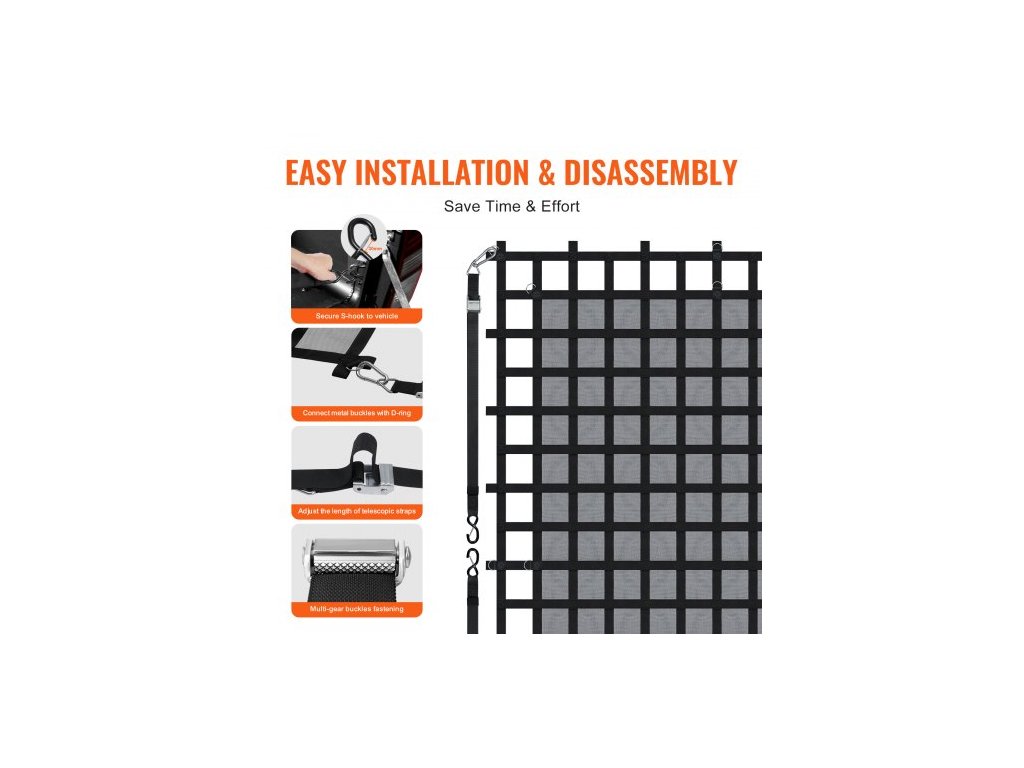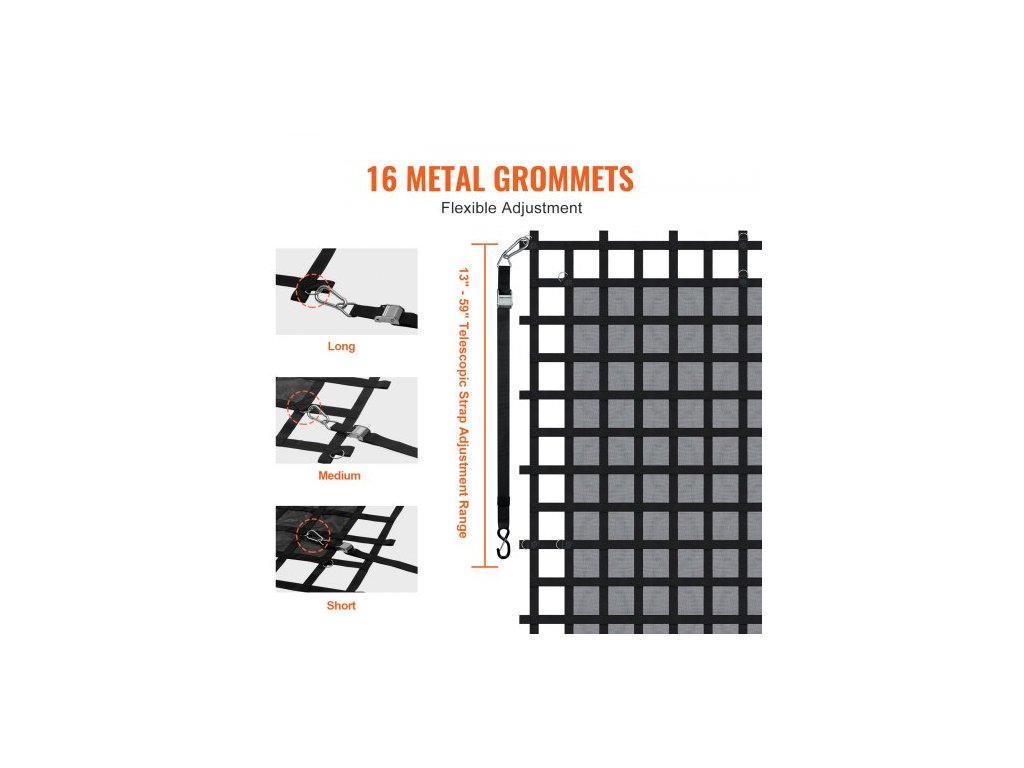 Síť Cargo Net, 120 x 105 palců, odolná síť pro nákladní automobily, 4 nastavitelné popruhy s karabinami a S-háky, odolná proti opotřebení a povětrnostním vlivům, vhodná pro pickup, nákladní vůz, džíp, SUV, loďVysoká nosnost