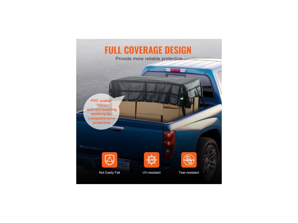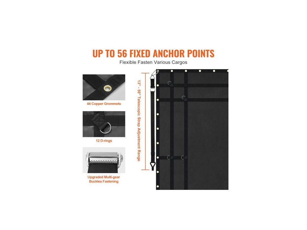 Nastavitelná velikost popruhu: 13 - 59" (330 - 1500 mm),Voděodolnost: Ano,Velikost karabiny: 3,9 x 1,9" (99 x 47 mm),Maximální tažná kapacita sítě: 700 lbs / 318 kg,Číslo modelu položky: VCCN0096,Hmotnost výrobku: 13,2 lbs / 6 kg,Materiál: Tkanina potažená PVC + PP popruh + nerezová ocel D-kroužky 12 ks + měděné průchodky 44 ks, Rozměry nákladu: 96 x 81 palců / 2440 x 2060 mm, Rozměry výrobku: 97,6 x 82,3 x 0,3 palce / 2480 x 2090 x 7 mm (plně rozložené)