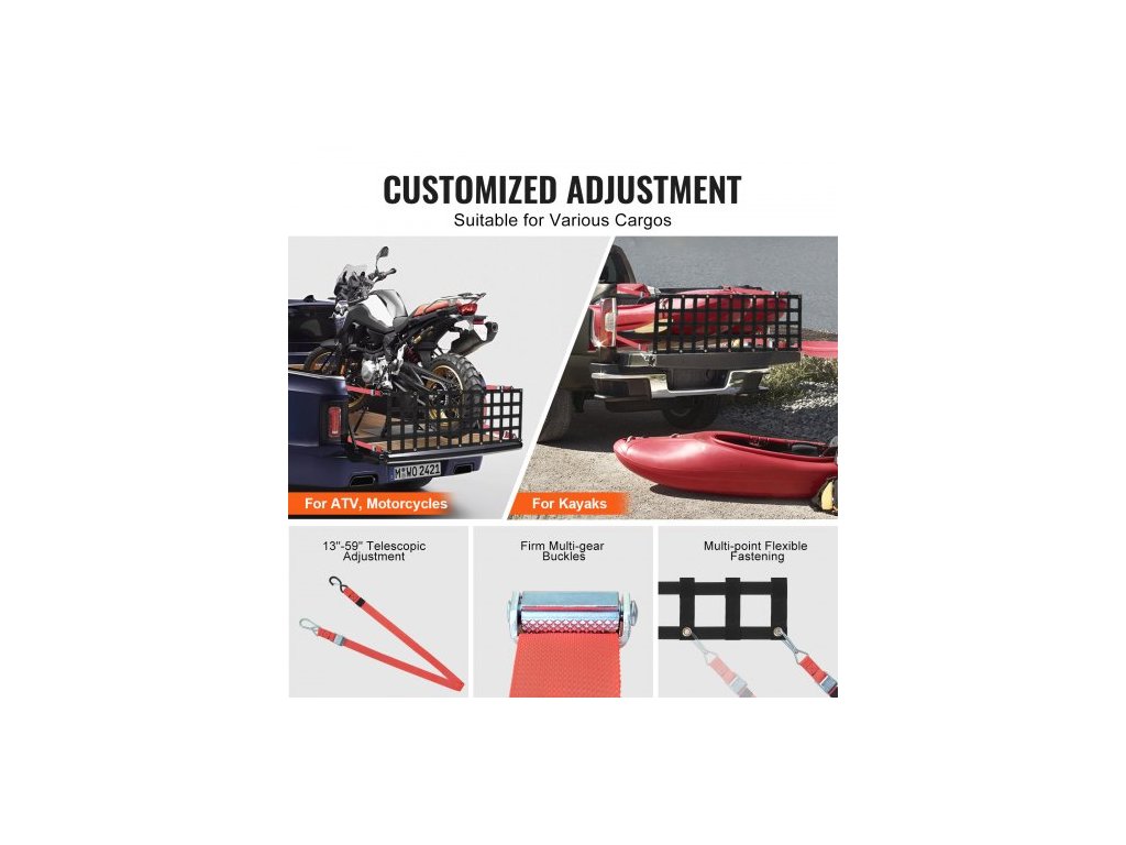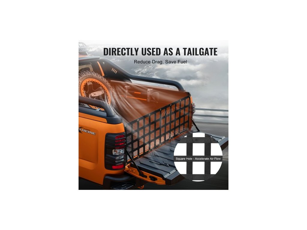 Síť na zadní dveře , 54" x 18" (127 cm x 46 cm), odolná síť na korbu nákladního vozu se 4 nastavitelnými teleskopickými popruhy, prodlužovací a odolná, flexibilní nastavení, vhodná pro pickup, přívěs, nákladní automobil, džíp, SUV