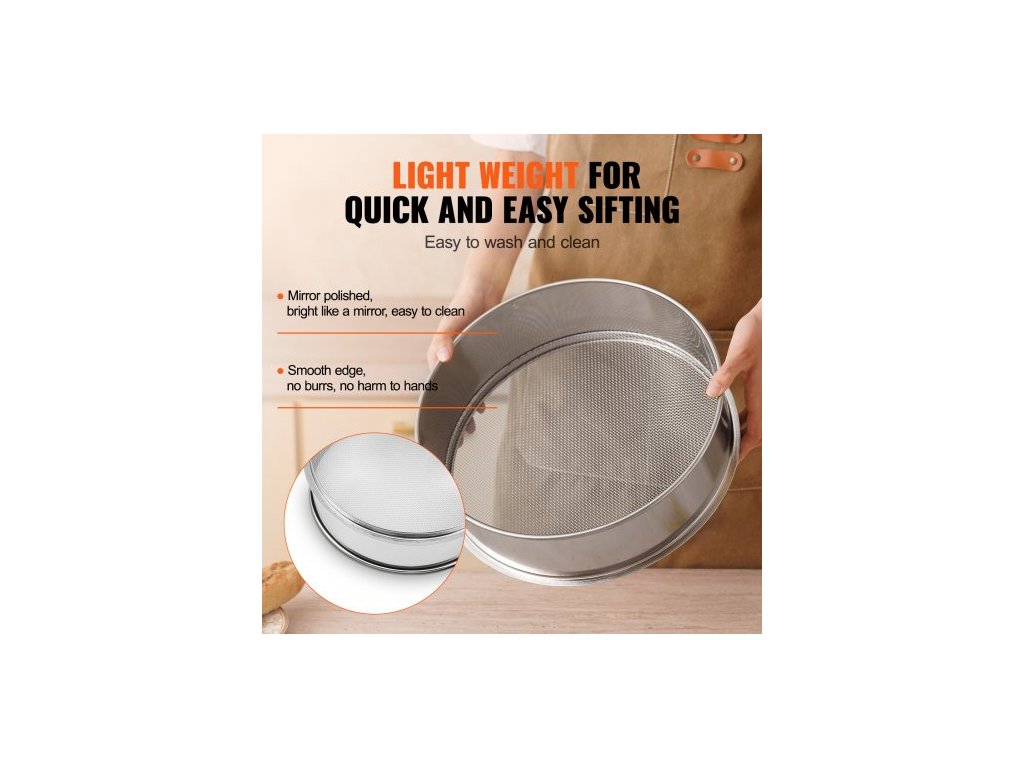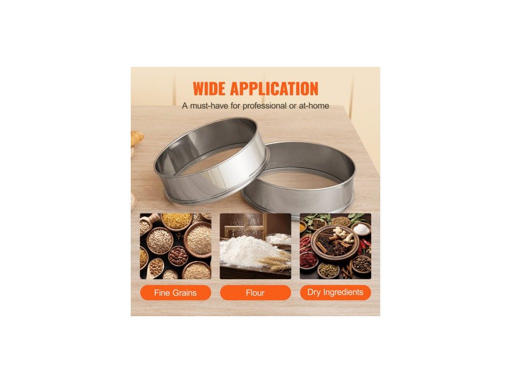 Síto na mouku s jemnými oky, síto na mouku 10 mesh, jemné síto z nerezové oceli 304, potravinářské, průměr sít 12,6" na pečení, 5 velikostí otvorů pro mungo fazole, rýži, mouku, perlový prášekNerezová ocel SUS304