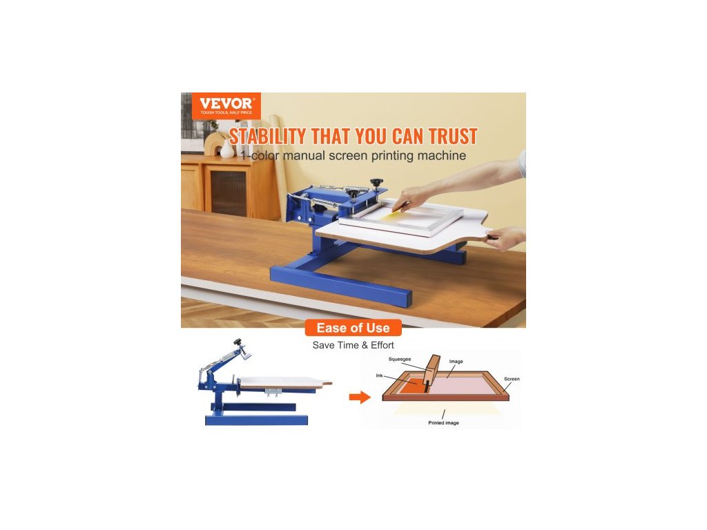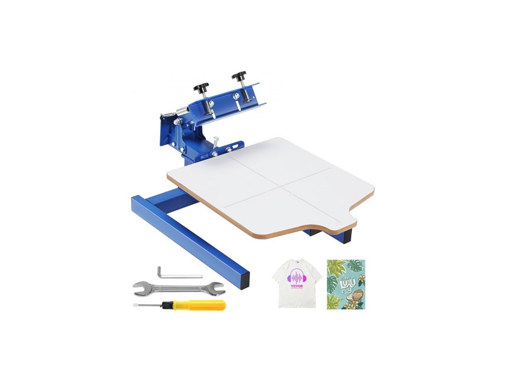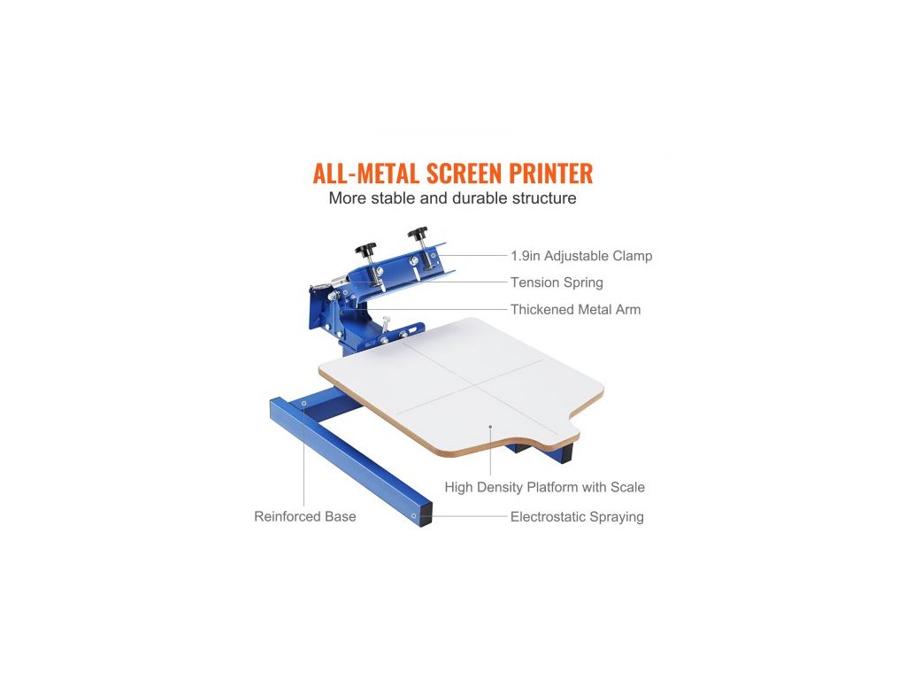 Sítotiskový stroj , 1barevný sítotiskový lis s 1 stanicí, sítotiskový lis 21,2x17,7 palce / 54x45 cm, dvouvrstvá polohovací paleta, nastavitelné napětí pro potisk triček
