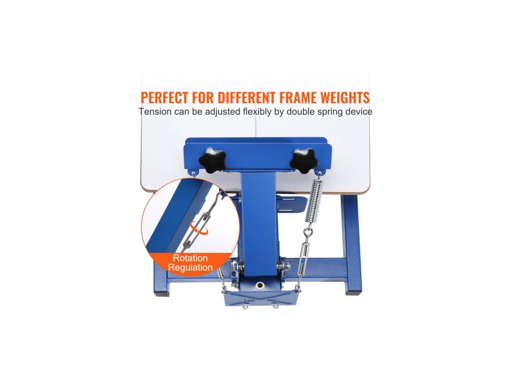 Sítotiskový stroj , 1barevný sítotiskový lis s 1 stanicí, sítotiskový lis 54x45 cm, dvouvrstvá polohovací paleta, nastavitelné napětí pro potisk tričekNastavitelné dvojité pružinové zařízení
