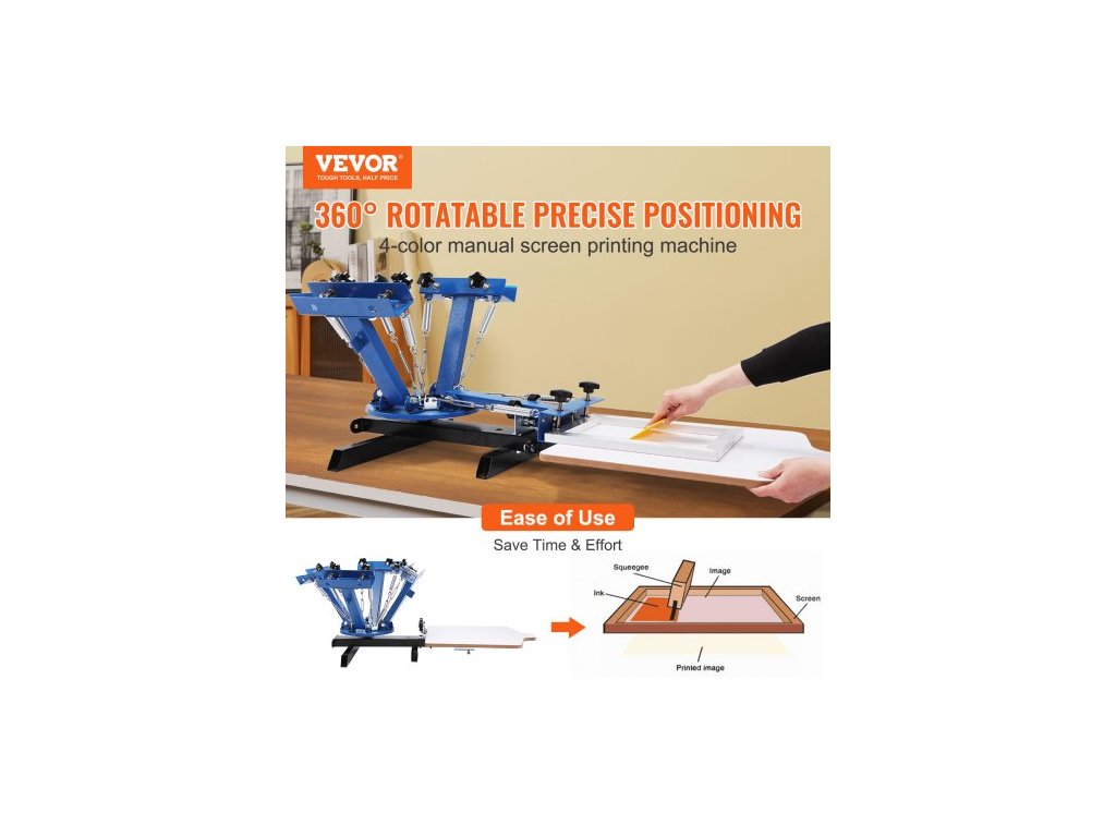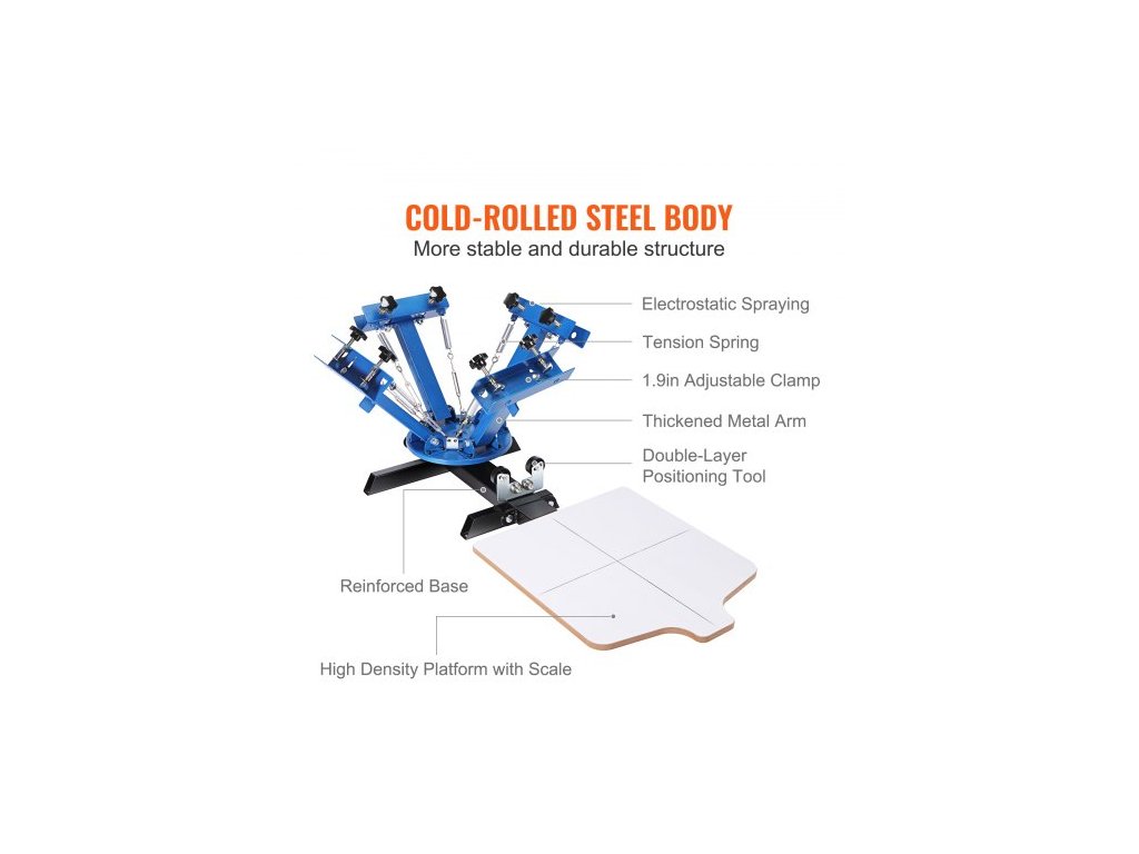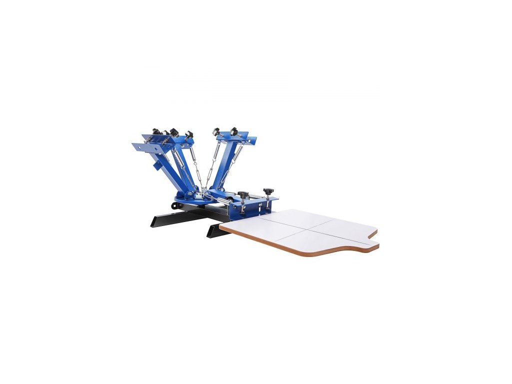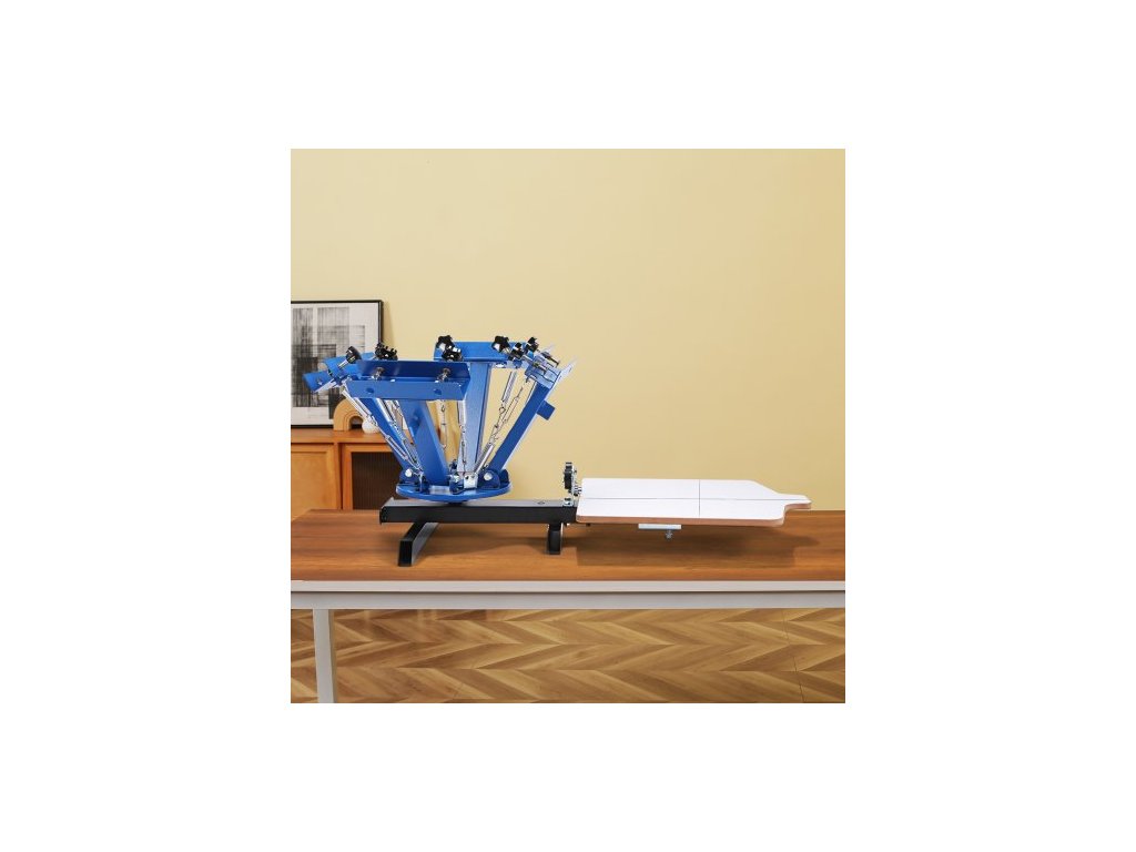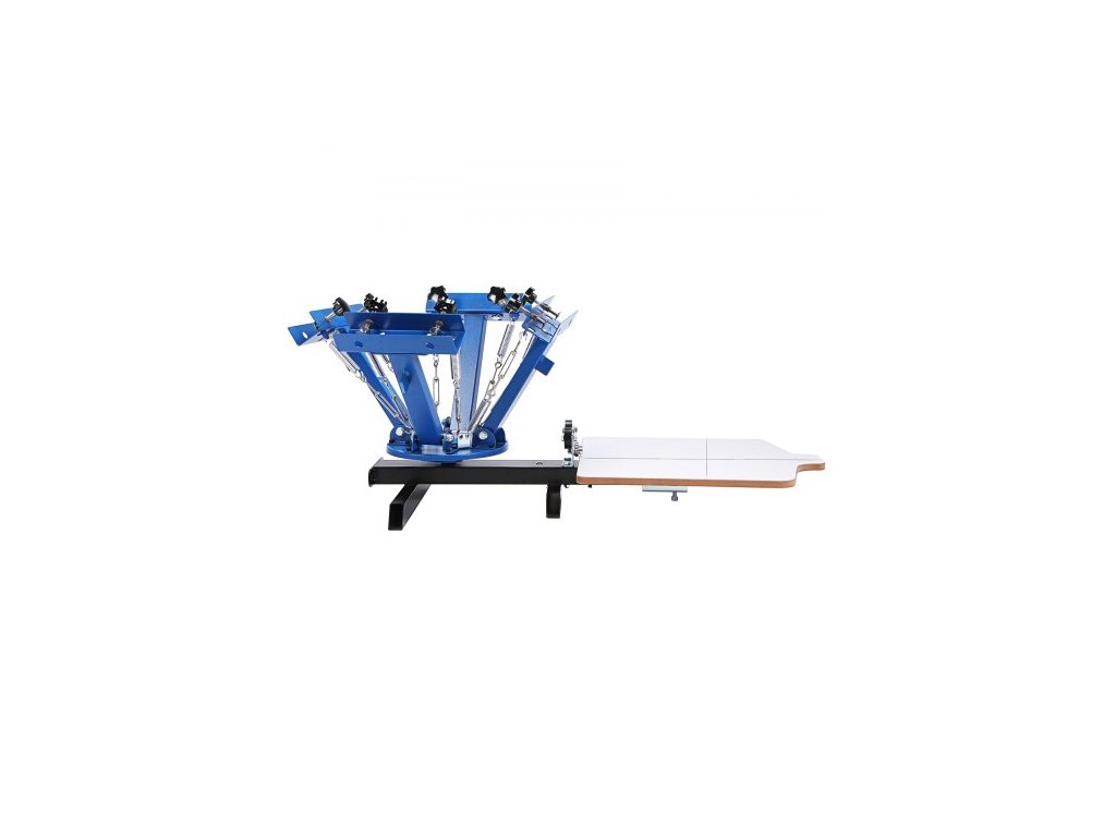 Sítotiskový stroj , 4barevný, 1 stanice, otočný o 360° sítotiskový stroj, sítotiskový stroj 54x45 cm, dvouvrstvá polohovací paleta pro potisk tričekDvojnásobná efektivita polohování