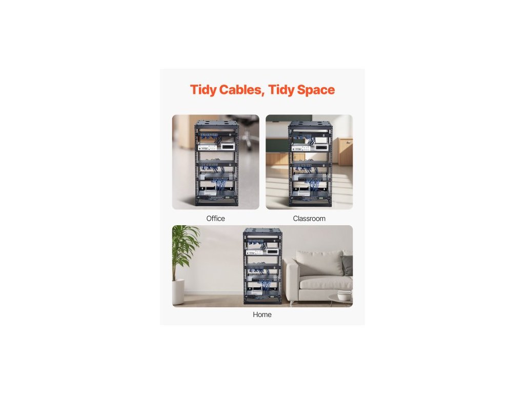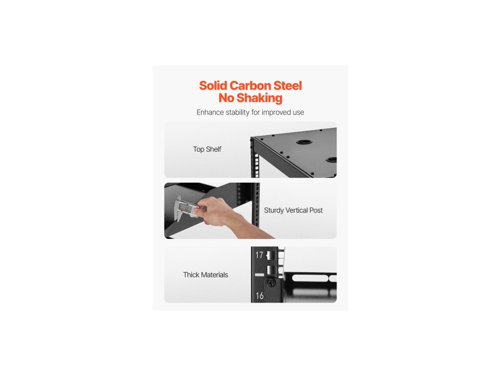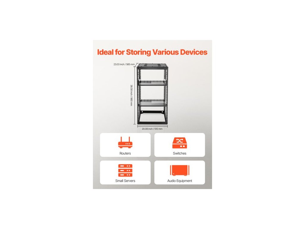 Síťový rack 20U s otevřeným rámem, hloubka 585 mm, nástěnný nebo stojící serverový rack, odolný 4sloupkový, s odvětrávanými policemi a montážním materiálem, pojme veškeré vaše síťové IT vybavení a AV zařízeníMasivní uhlíková ocel