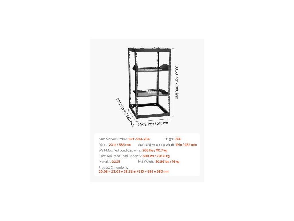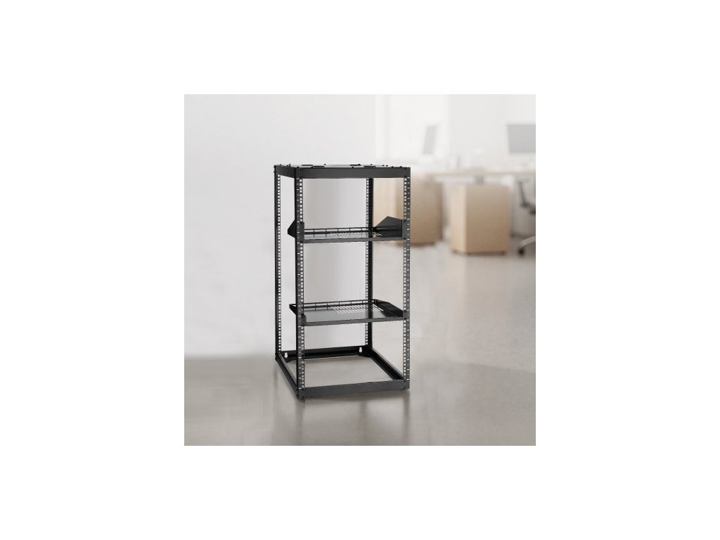 Síťový rack 20U s otevřeným rámem, hloubka 585 mm, nástěnný nebo stojící serverový rack, odolný 4sloupkový, s odvětrávanými policemi a montážním materiálem, pojme veškeré vaše síťové IT vybavení, AV vybavení.