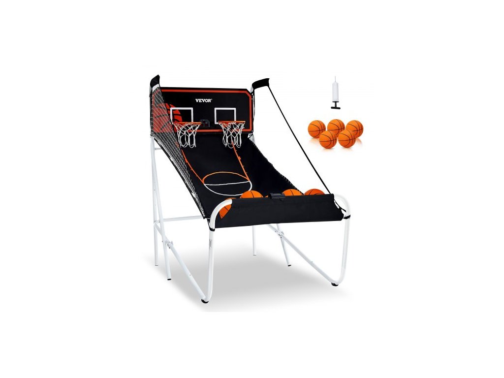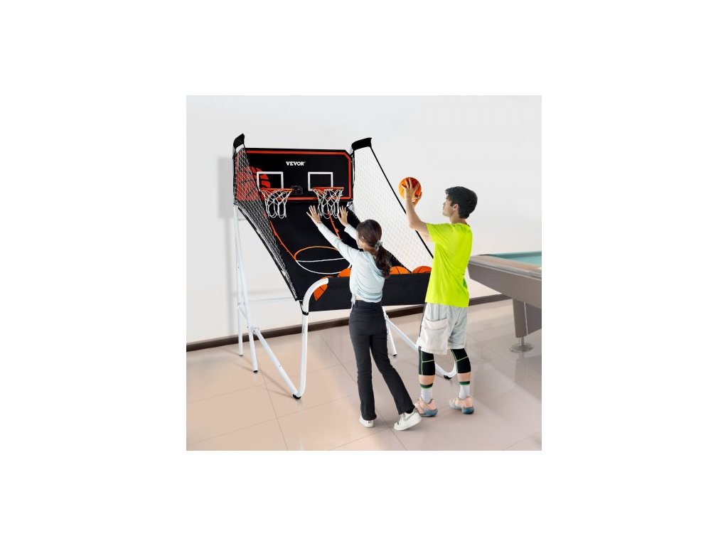 Skládací basketbalová arkádová hra , vnitřní basketbalová hra pro 2 hráče, domácí duální odpal s 5 míči, 8 herních režimů, elektronická výsledková tabule a hustilka, pro děti i dospělé (černobílá)Pouliční basketbalová hra