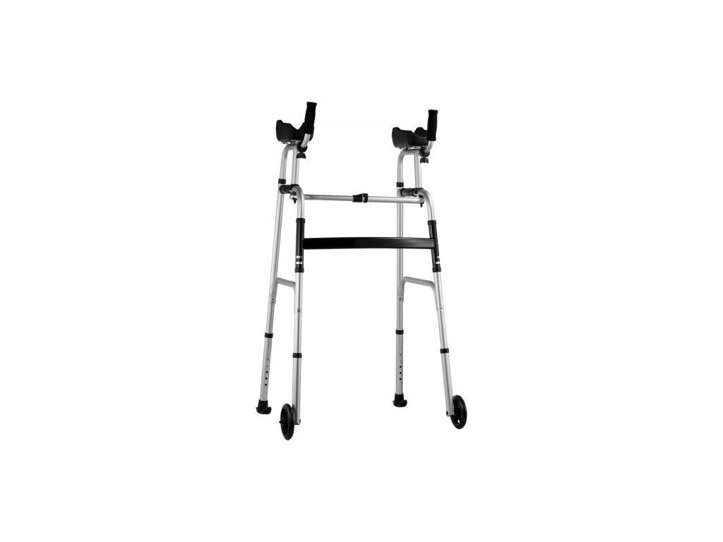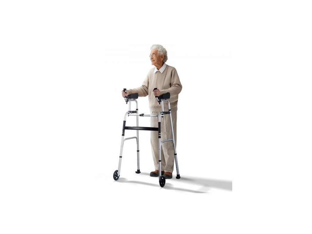 Skládací chodítko 2 v 1 s odnímatelnými loketními opěrkami, výškově nastavitelné skládací chodítko s 5" plnými koly, lehký hliník | Pomocník pro mobilitu s předními koly pro seniory s postižením, 200 kgKompaktní a skládací design