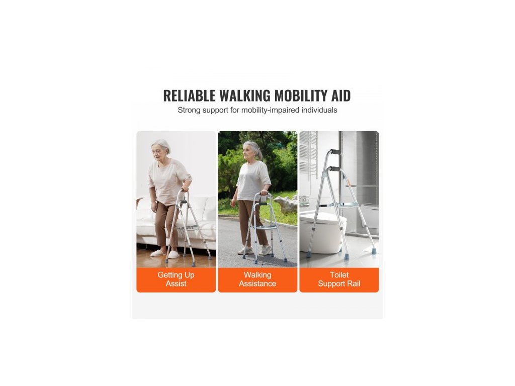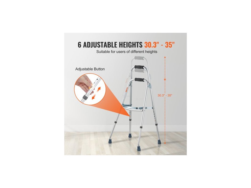 Skládací chodítko Hemi, jednoruční skládací chodítko pro seniory s 6stupňovou nastavitelnou výškou, lehký hliník | Boční jednoruční pomůcka pro mobilitu starších osob s postižením, do 158 kg