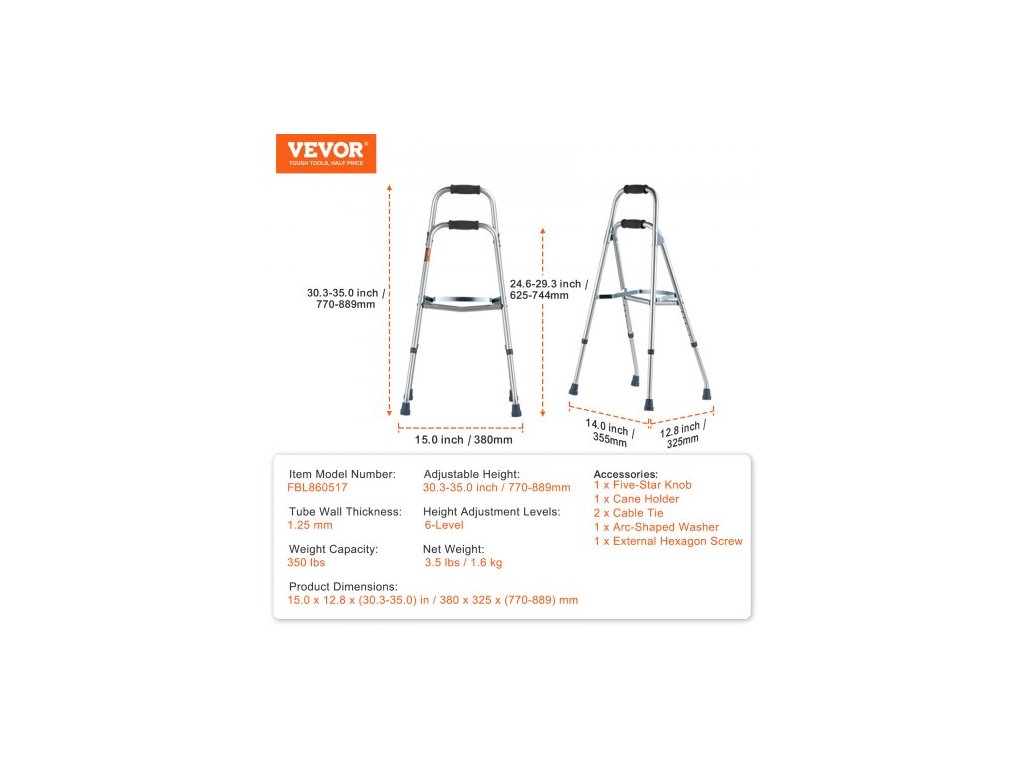 Úrovně nastavení výšky: 6 úrovní,Nastavitelná výška: 770–889 mm,Tloušťka stěny trubky: 1,25 mm,Nosnost: 157 kg,Číslo modelu položky: FBL860517,Rozměry výrobku: 380 x 325 x 770–889 mm,Čistá hmotnost: 1,6 kg
