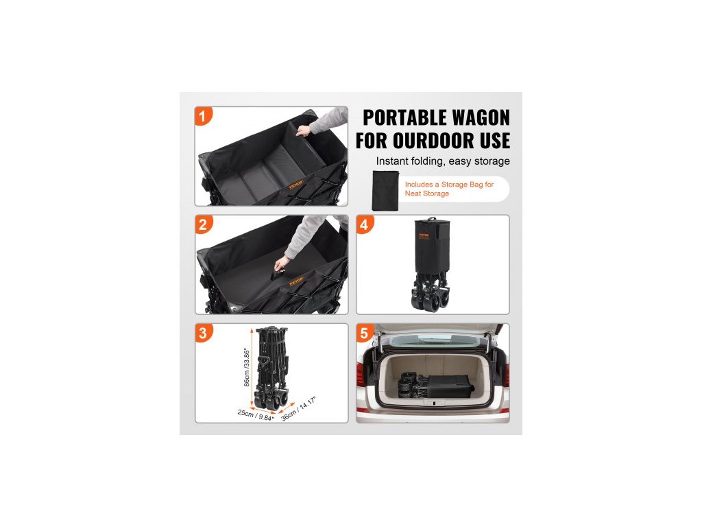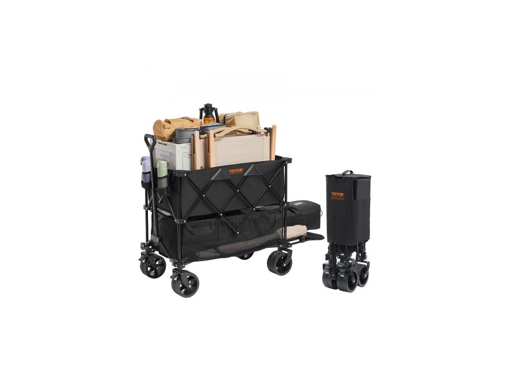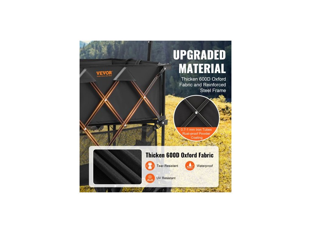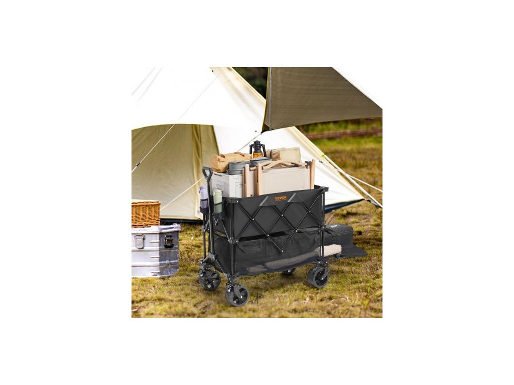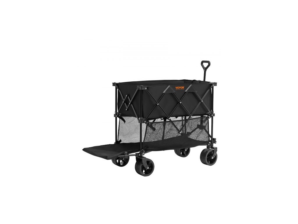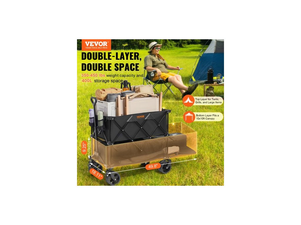 Skládací dvoupatrový vůz , skládací vozík o objemu 400 l s terénními koly, odolný skládací vozík, nosnost 168-204 kg pro kempování, nakupování, zahradu, extra dlouhý prodlužovací rám 132 cmnosnost 168-204 kg