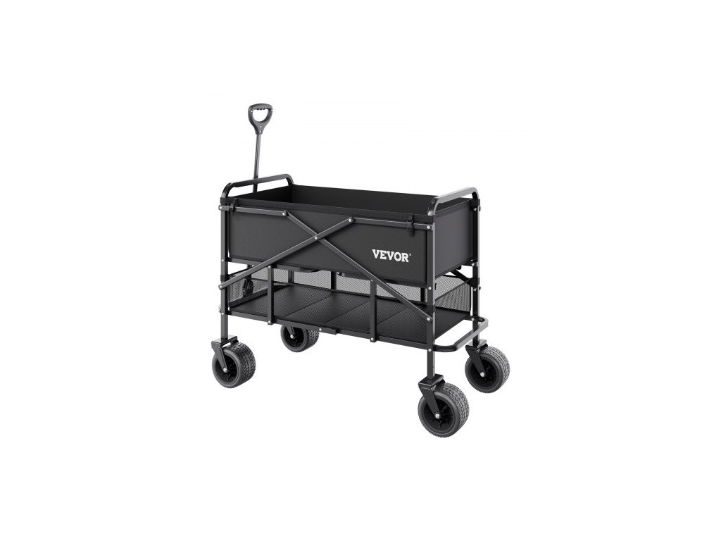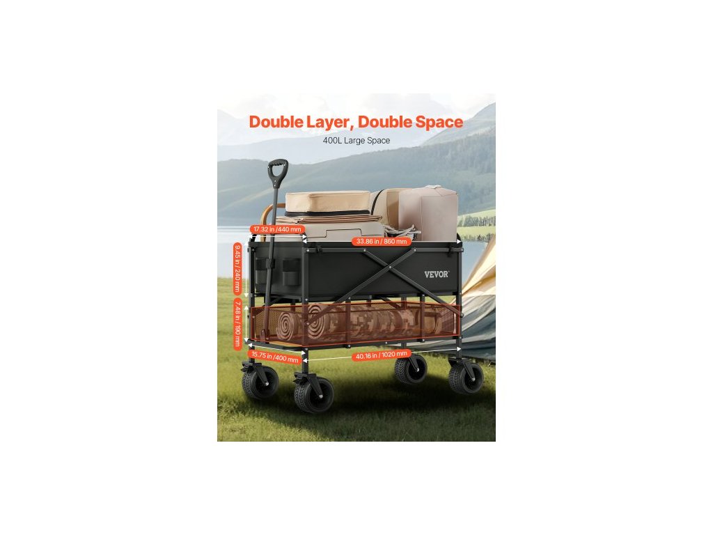 Skládací dvoupatrový zahradní vozík , 400l, těžký skládací vozík, prodloužený dlouhý zahradní vozík s terénními koly, nosnost až 200 kg, venkovní užitkový vozík pro kempování, sport a nakupování