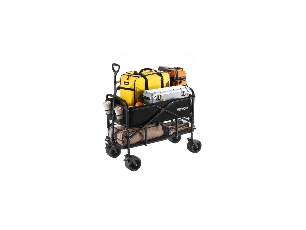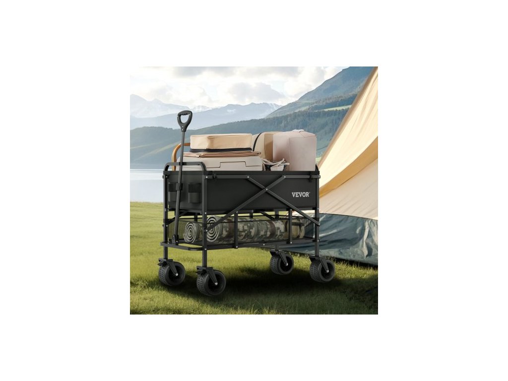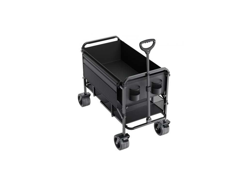 Skládací dvoupatrový zahradní vozík , 400l těžký skládací vozík, prodloužený dlouhý zahradní vozík s terénními koly, nosnost až 200 kg, venkovní užitkový vozík pro kempování, sport a nakupování2 držáky na nápoje