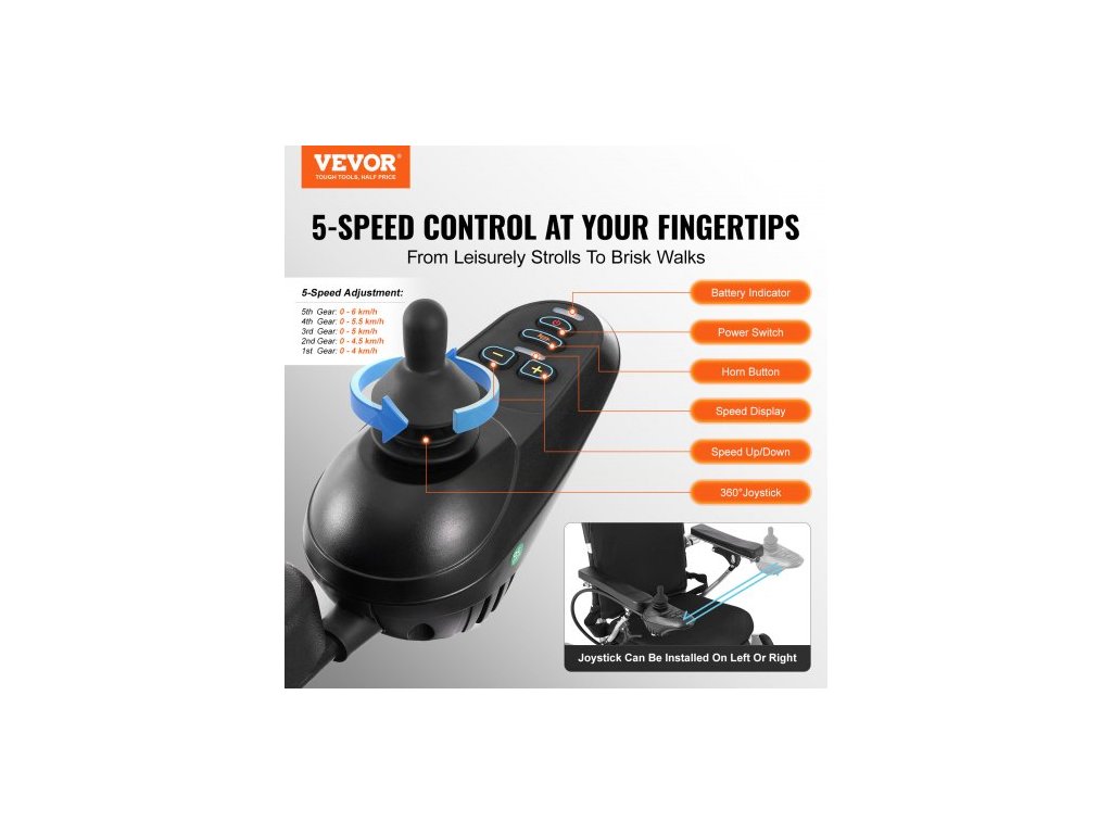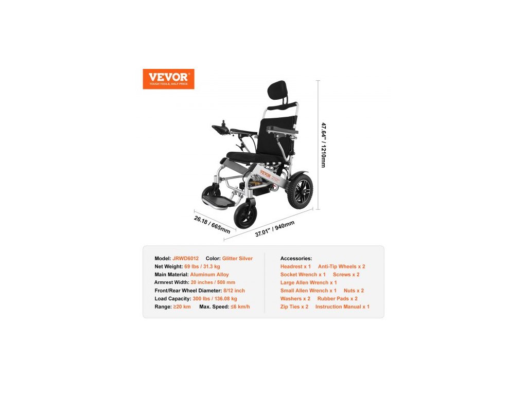 Skládací elektrický invalidní vozík s motorem, nosnost 136 kg, nastavitelné opěradlo, šířka 50,8 cm, snadná obsluha, jednoduchá instalace, kompaktní a prostorově úsporný, bezproblémové překonávání překážek, nastavitelné opěradlo, vícenásobné bezpečnostní prvky, max. Rychlost: ≤3,7 mil/h (6 km/h),Šířka sedadla: 20 palců / 508,00 mm,Průměr předních/zadních kol: 8/12 palců (203,2/304,8 mm),Nosnost: 300 liber / 136,08 kg,Model: JRWD6012,Opěradlo: Nastavitelné,Dojezd: ≥12,5 mil / 20 km,Rozměry výrobku: 37,01 x 26,18 x 47,64 palců / 940 x 665 x 1210 mm,Čistá hmotnost: 69,00 liber / 31,3 kg,Hlavní materiál: Hliníková slitinaDoplňkové parametry