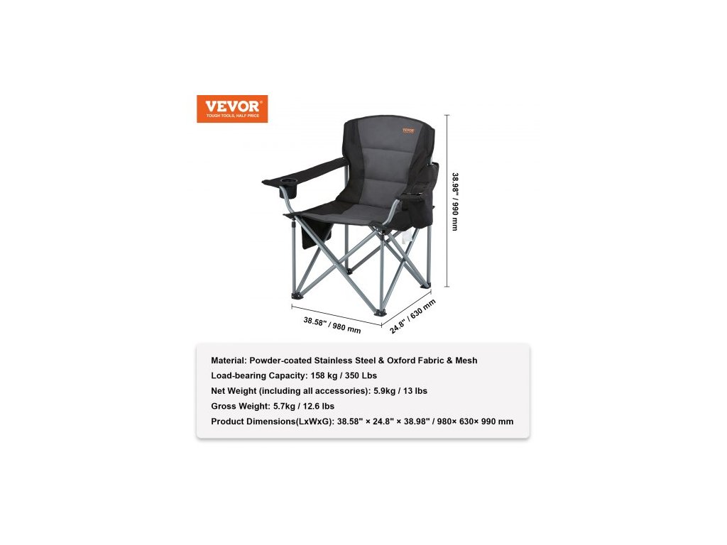 Nosnost: 158 kg / 150 liber,Hrubá hmotnost: 5,7 kg / 12,6 liber,Čistá hmotnost (včetně veškerého příslušenství): 5,9 kg / 13 liber,Číslo modelu položky: ZM2006XL,Materiál: Práškově lakovaná nerezová ocel a oxfordská tkanina a síťovina,Rozměry výrobku: 25,2" x 36,61" x 39,37" / 980 x 630 x 990 mm