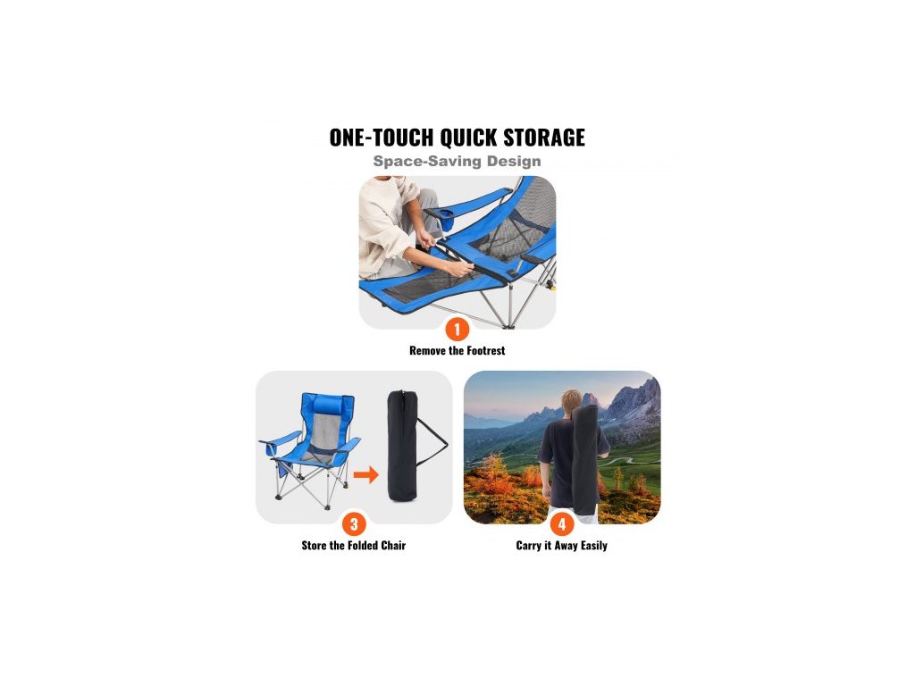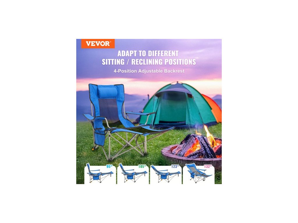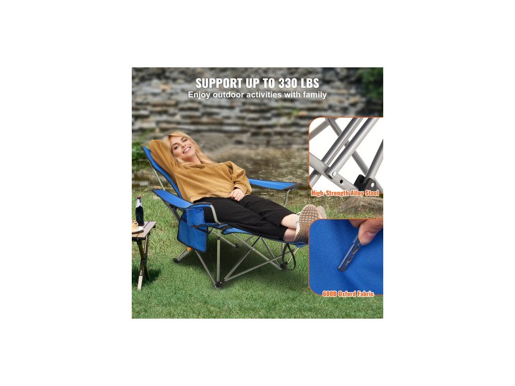Polohovací kempingová židle, skládací kempingová židle s nosností 150 kg, přenosná kempingová židle s opěrkou nohou, držákem na nápoje, boční kapsou a opěrkou hlavy, pro kempování, rybaření a outdoorové aktivityPohodlný zážitek
